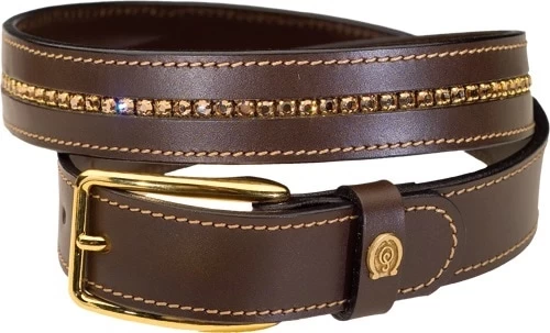 Well-made leather belt with rhinestones stripe.