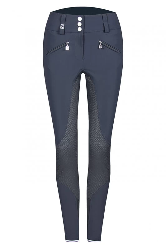Caja G HI Waist has a high waistband, double side seams for best stability, no seam over the knee instead covers the grip fabric the knee, on the back the riding breeches are form fitted with no gap in the back.