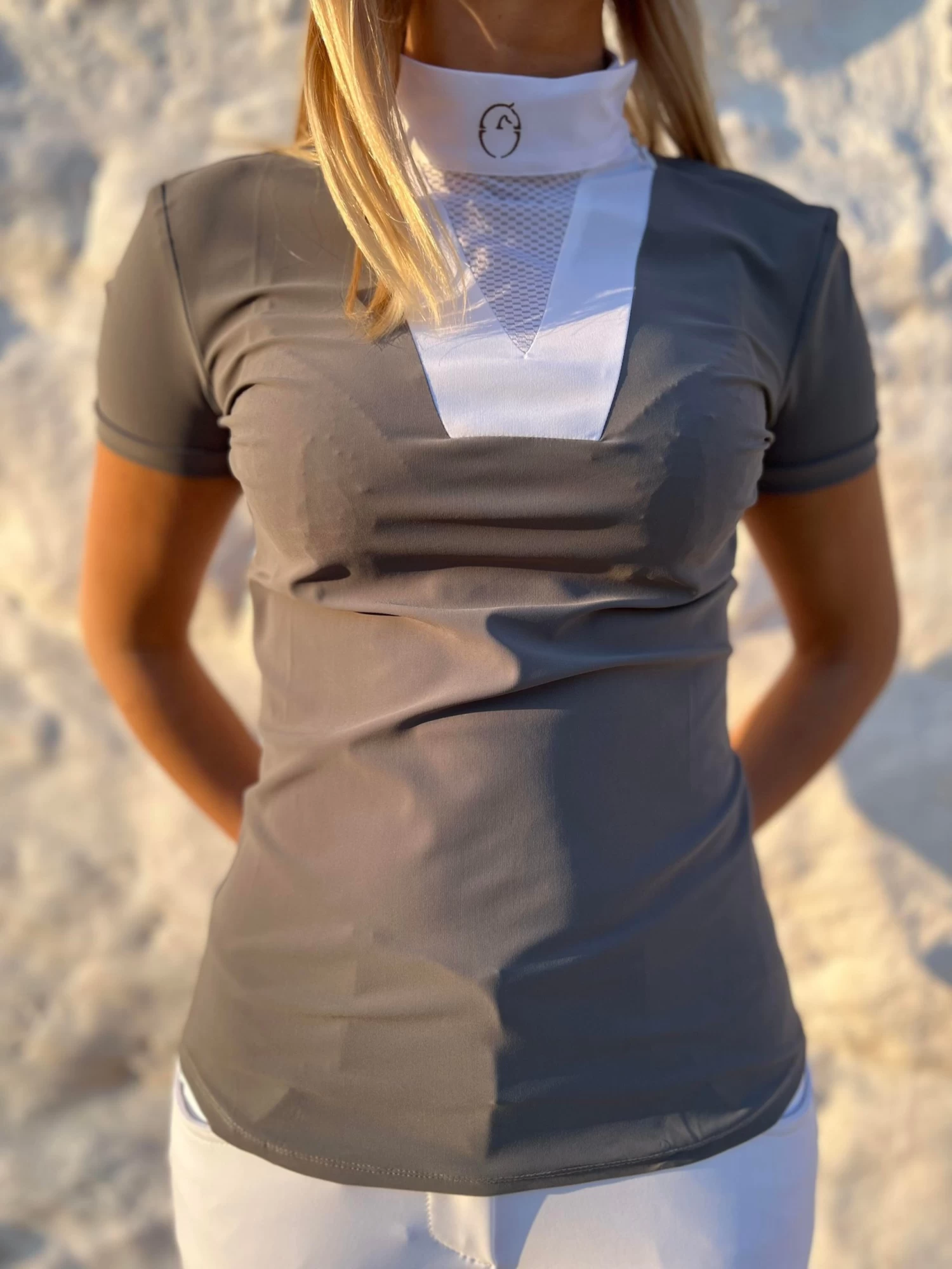 Brescia SS Shirt is a super nice and comfortable competition shirt with short sleeve. The competition shirt has a nice dark grey color with white parts on top and a white collar with a small Vestrum logo on.