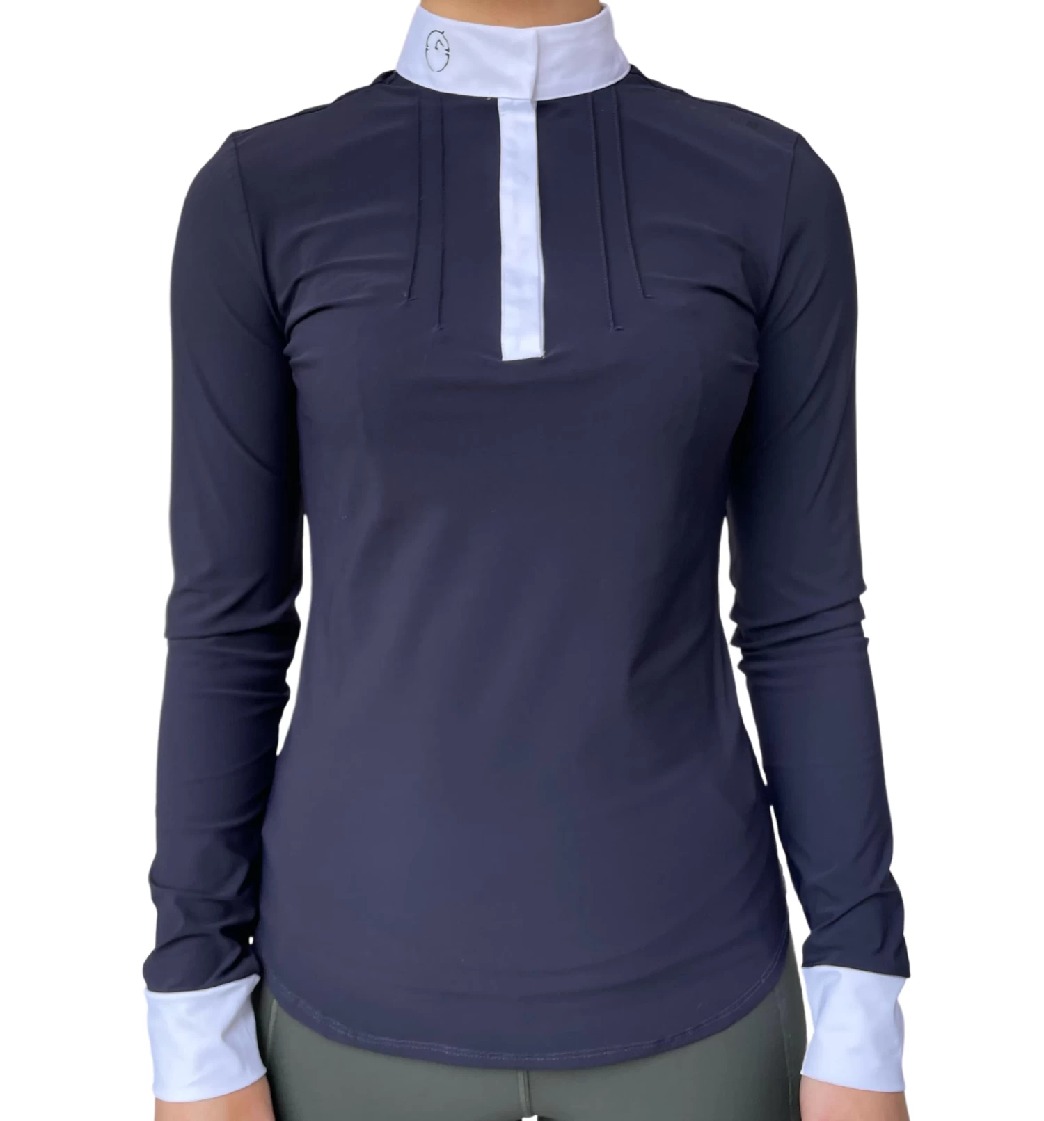 This is a competition shirt in a classic, stylish model. The competition shirt from Vestrum has a white collar with a blue Vestrum logo on the right side, white cuffs and hidden buttons.