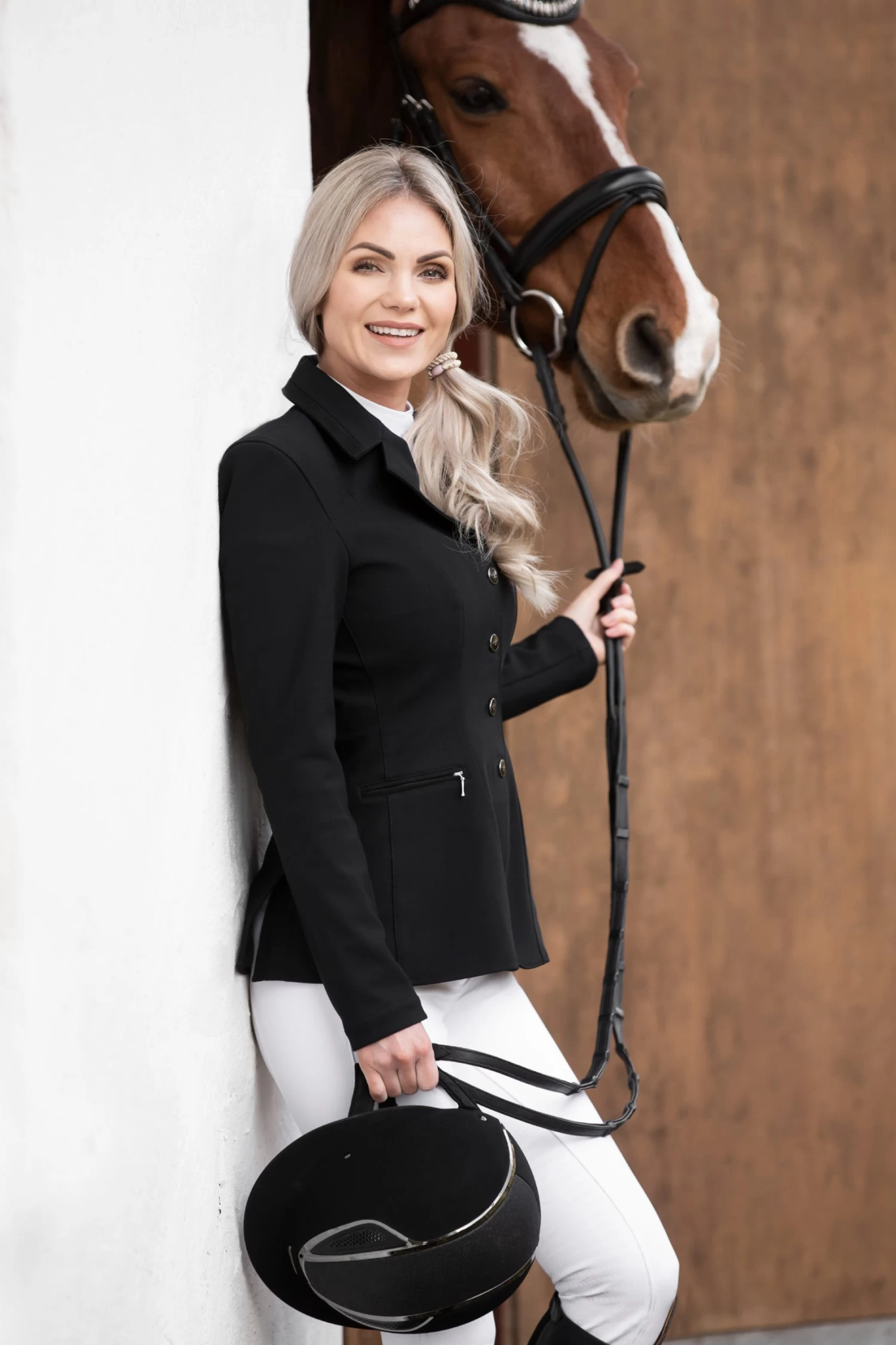 The Wilma riding jacket is a really affordable alternative in a soft material. The competition jacket is buttoned with both zipper and buttons, which makes it get a nice fit.