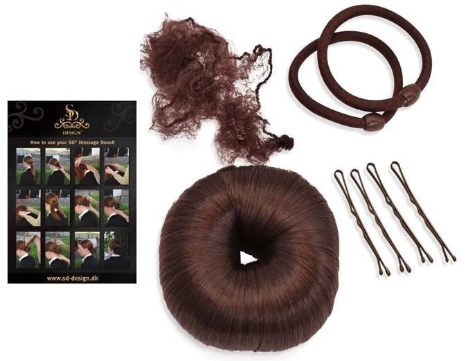 The package includes a hair donut, a large hair net and hairpins. Everything you need to make a nice hair set for the competition. Or to the party.