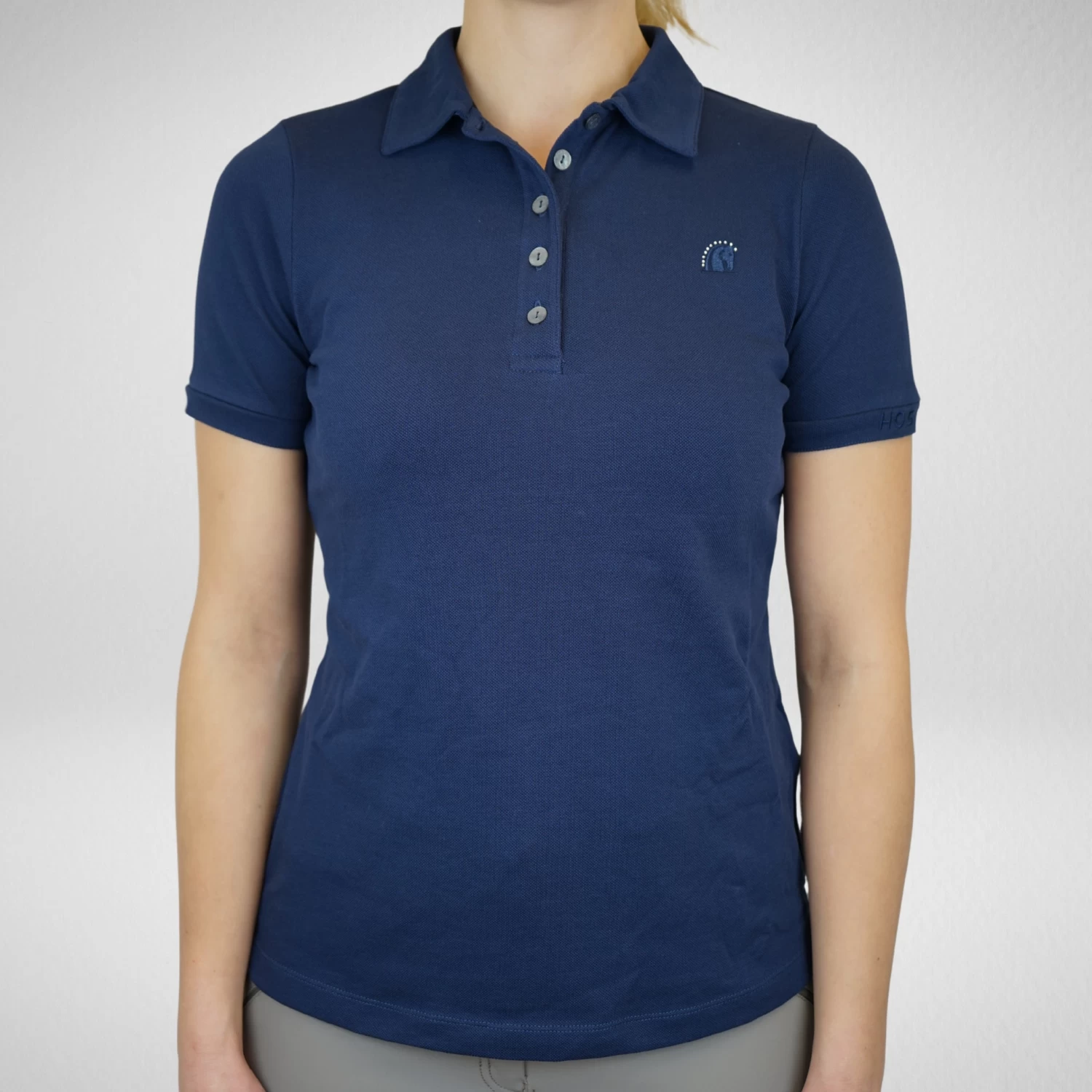 This polo shirt has a slim fit and plain design, featuring the Hogsta embroidered logo with rhinestone details on the chest and on the left cuff, both details goes tone in tone with the navy color of the shirt. The polo is decorated with five toneintone buttons at the front, which is both a neat details but also makes the polo easy to put on and take off.Â
