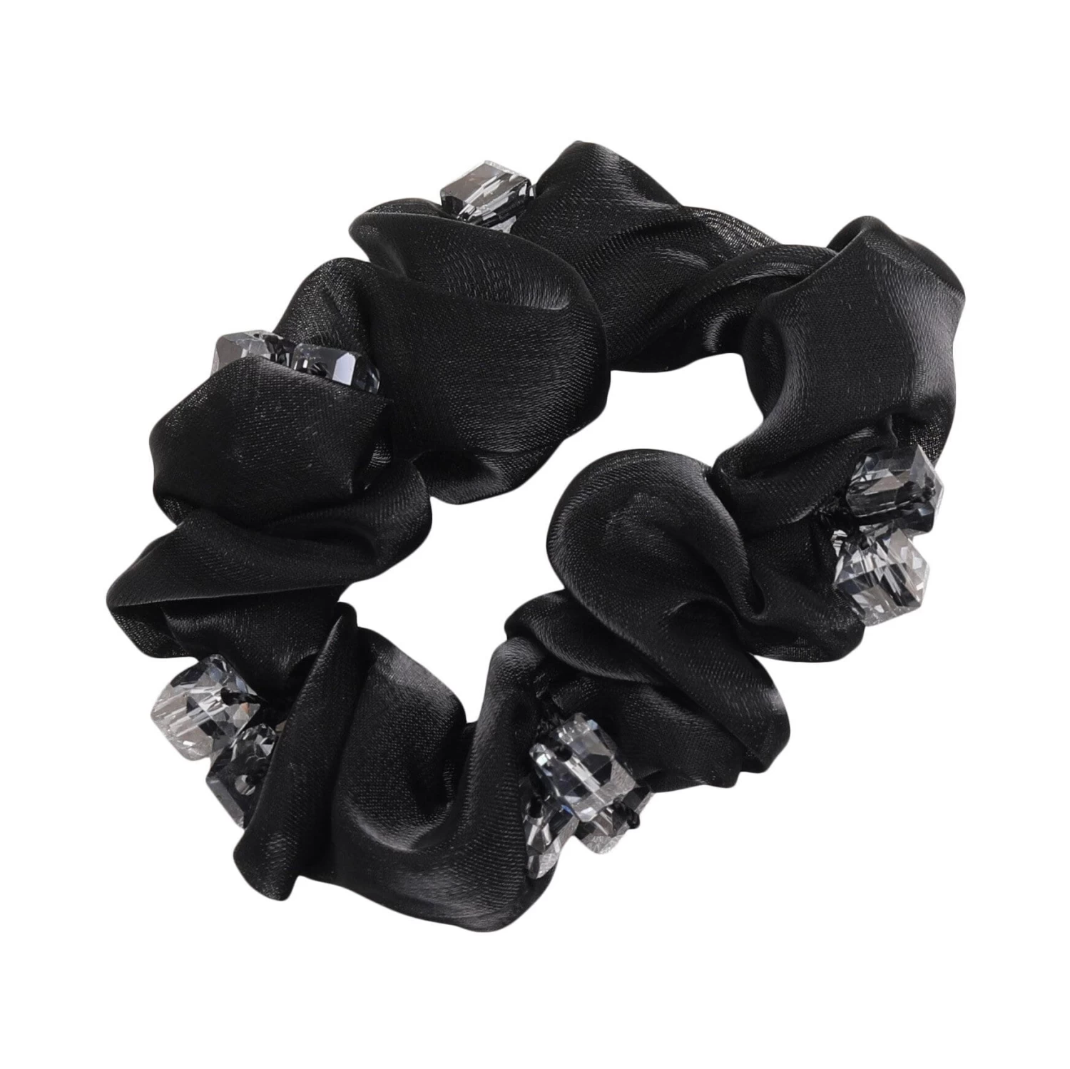 Beautiful elastic hair tie in black satin-like material with large grey-black rhinestone details from SD Design.