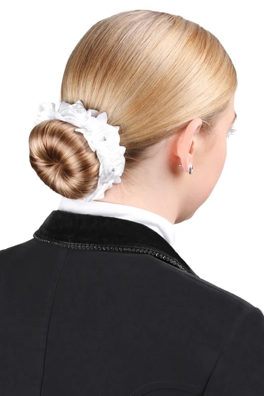 Beautiful elastic scrunchie with silk flowers and rhinestone details from SD Design.
