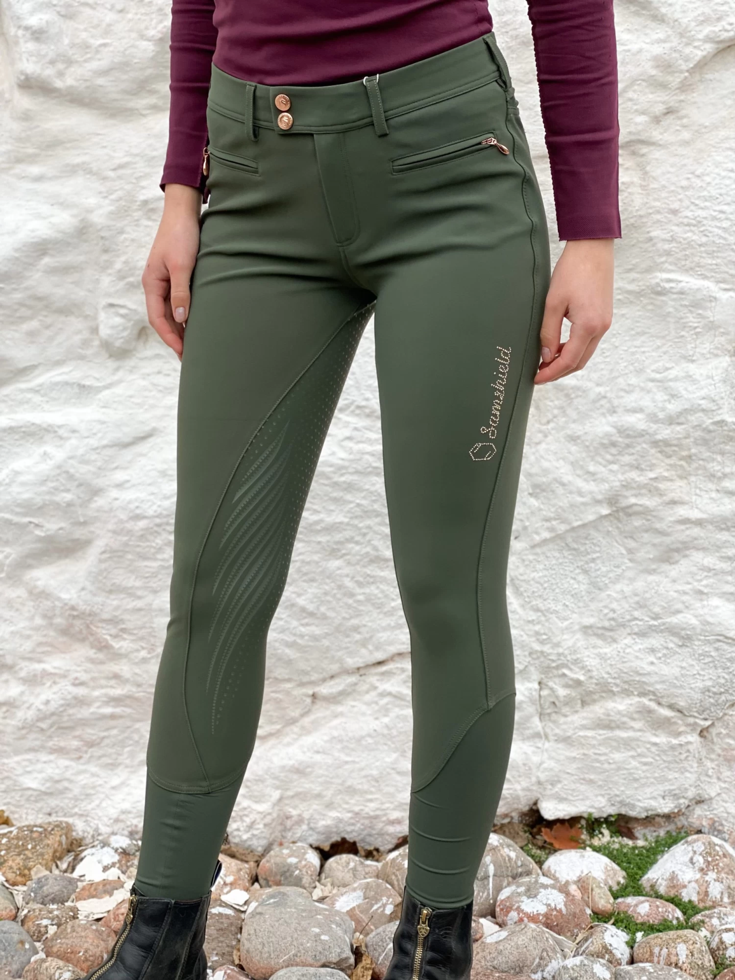 Diane Breeches has nice details in form of swarovski rhinestones and nice sewn details in the back, two front pockets with zipper and a Samshield logo in swarovski on the leg.