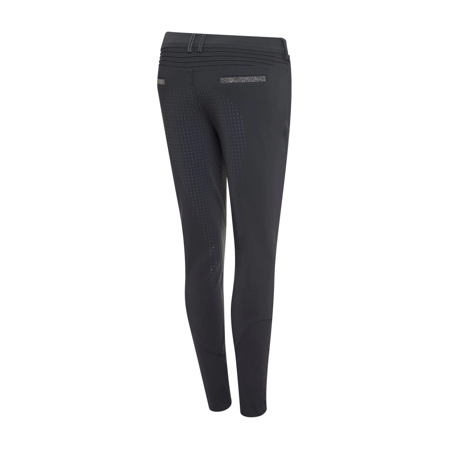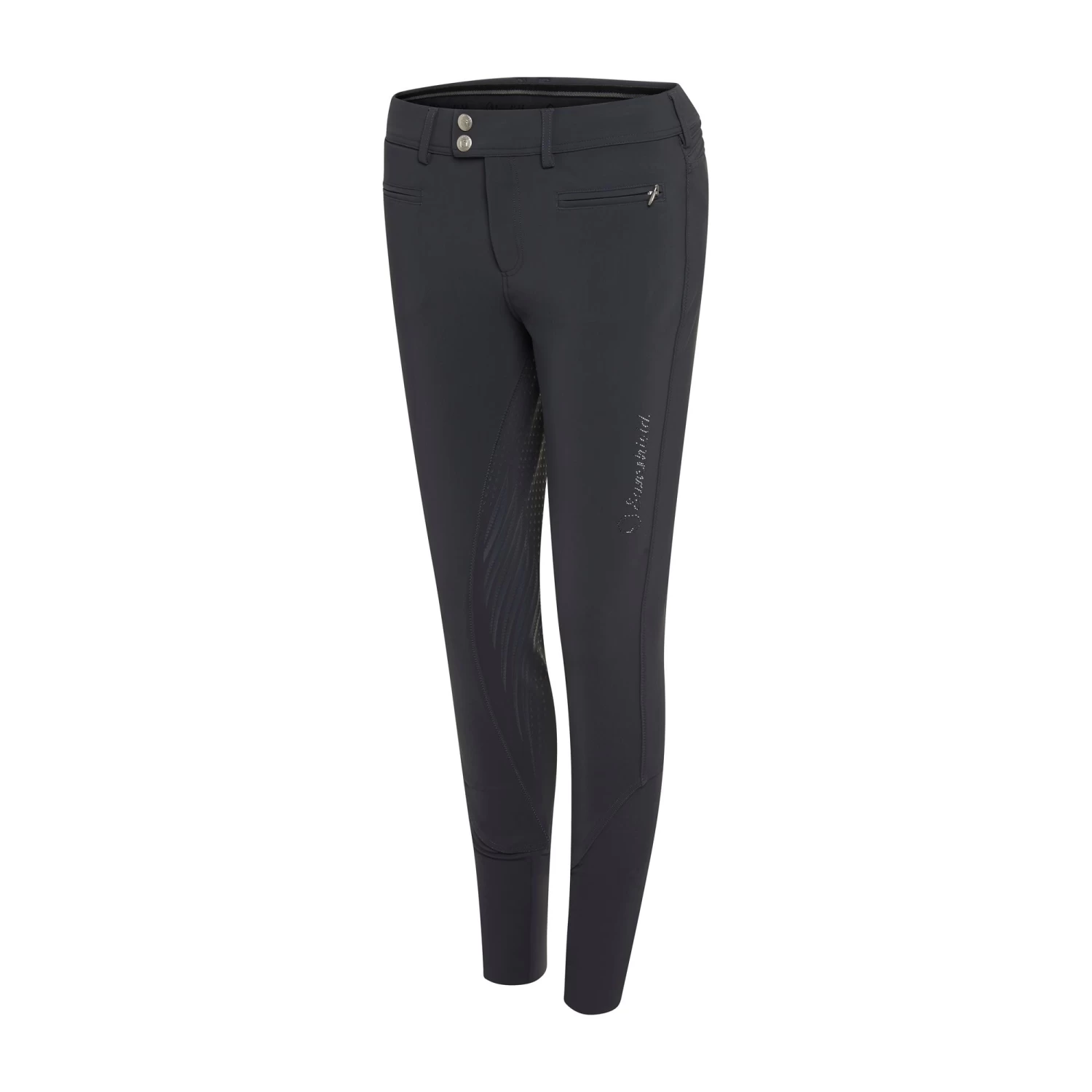 Diane Riding Breeches is super comfortable and stretchy riding breeches with swarovski details for an exclusive look. The breeches has full grip and has two buttons in front. The riding breeches is made in a soft functional material with a strong four-way stretch. The material is breathable and water and dirt repellent. Diane Breeches has nice details in form of swarovski rhinestones and nice sewn details in the back, two front pockets with zipper and a Samshield logo in swarovski on the leg. Material: 73% Nylon/Polyamide, 27% Elastane Washable in 30 degrees.