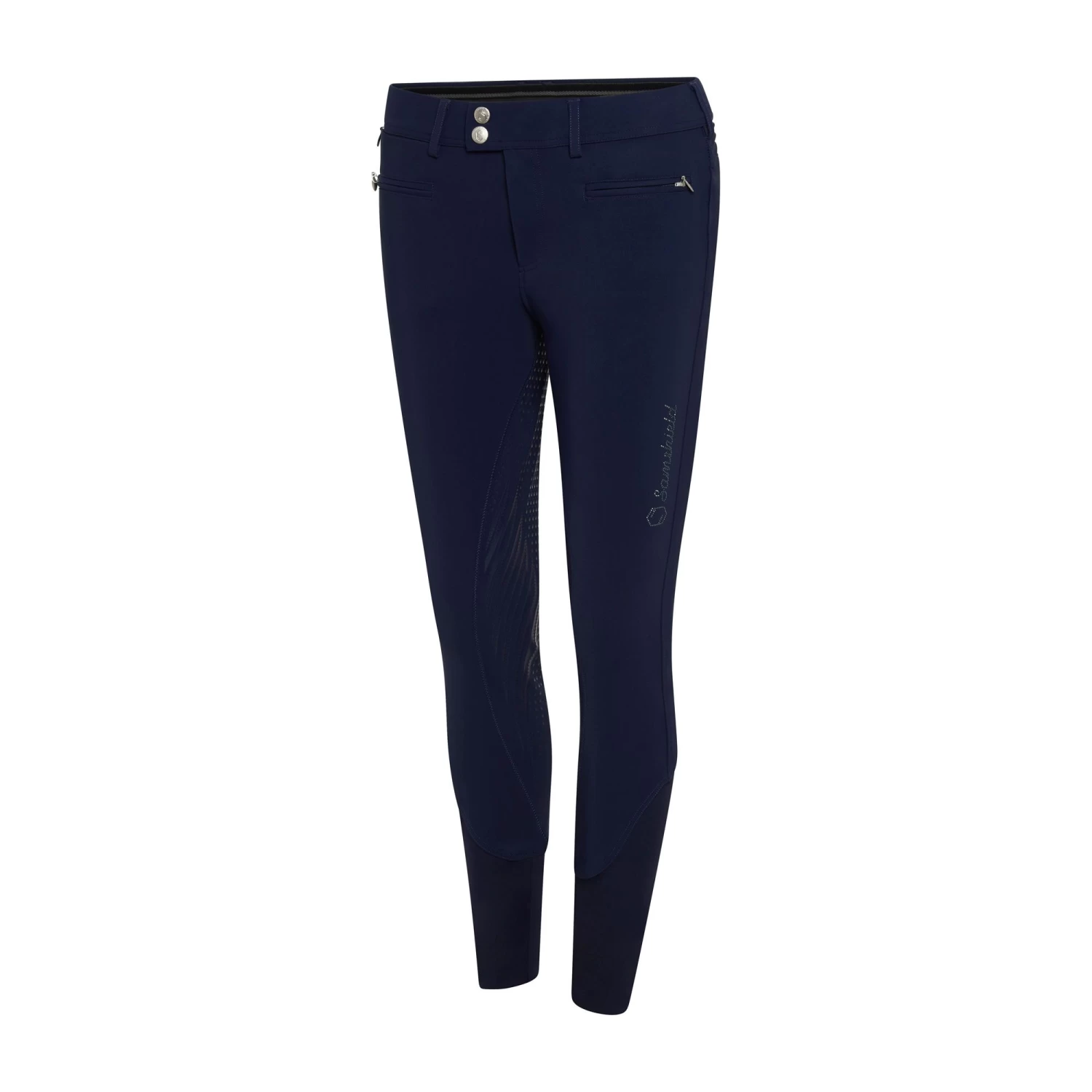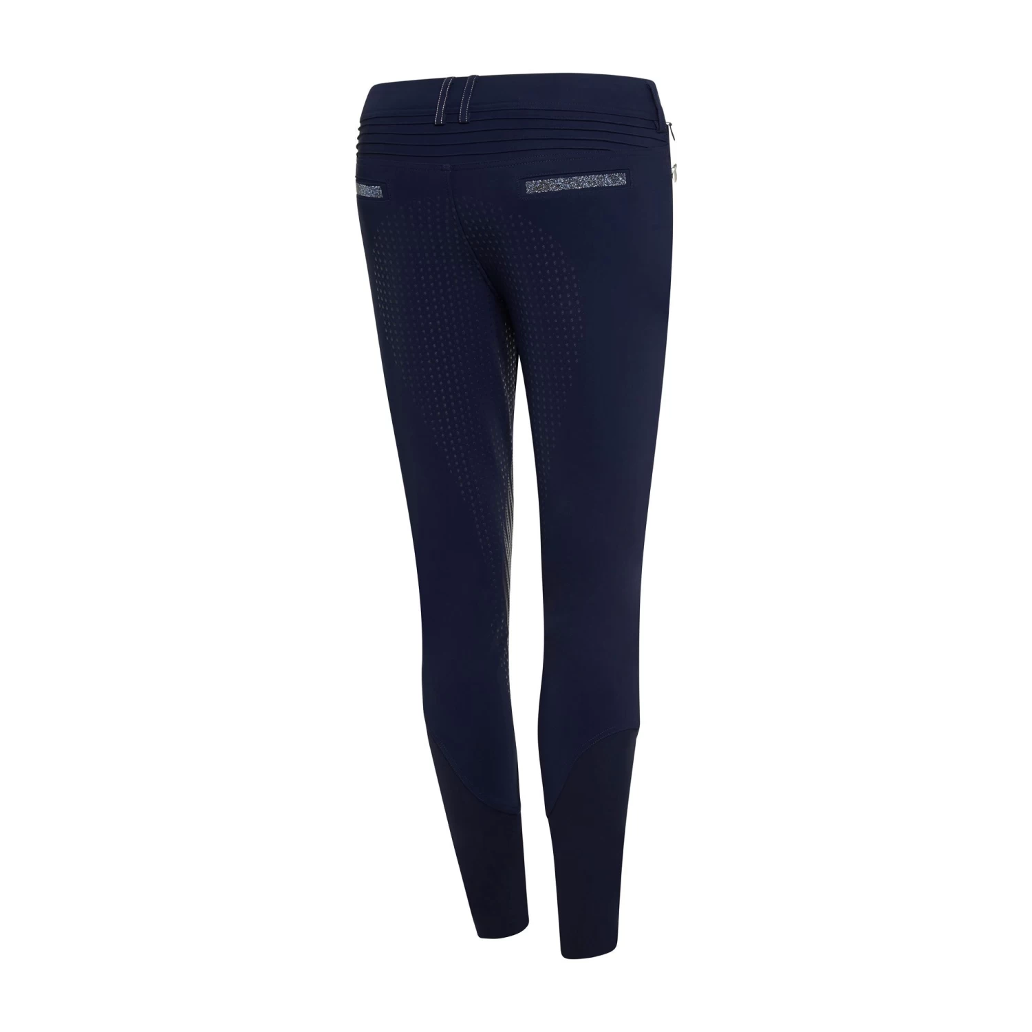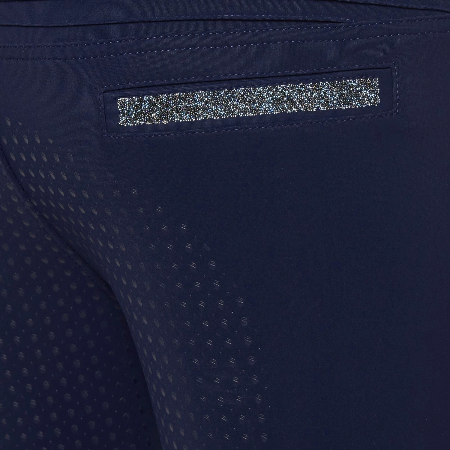 Diane Riding Breeches is super comfortable and stretchy riding breeches with swarovski details for an exclusive look. The breeches has full grip and has two buttons in front. The riding breeches is made in a soft functional material with a strong four-way stretch. The material is breathable and water and dirt repellent. Diane Breeches has nice details in form of swarovski rhinestones and nice sewn details in the back, two front pockets with zipper and a Samshield logo in swarovski on the leg. Material: 73% Nylon/Polyamide, 27% Elastane Washable in 30 degrees.