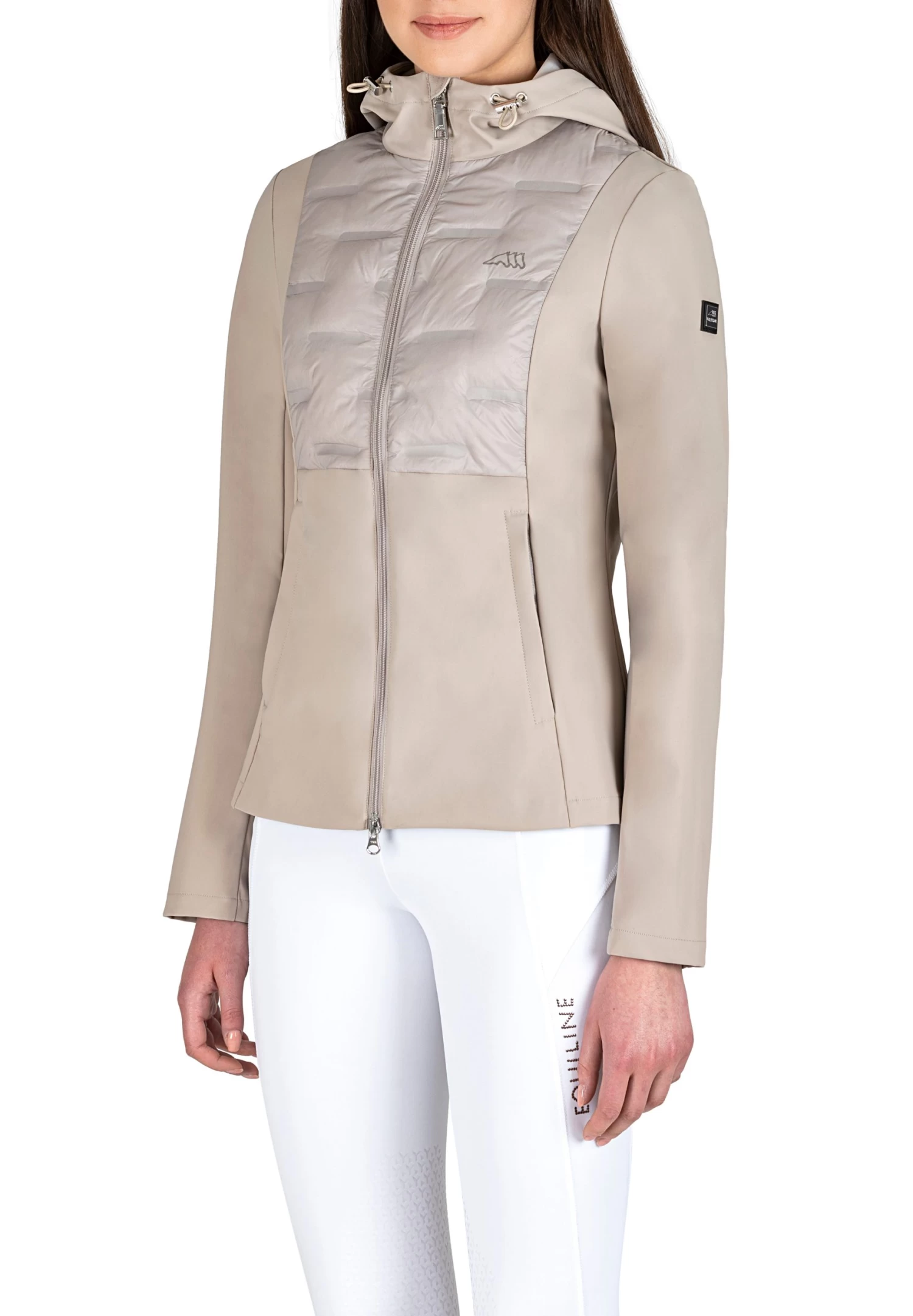 This is the perfect spring jacket from Equiline, a hybrid between lined panels and softshell material. The lined panels, which are lined with real down, cover the upper part of the upper body in the front and the entire back. The other parts are made of comfortable softshell that is slightly water-repellent.