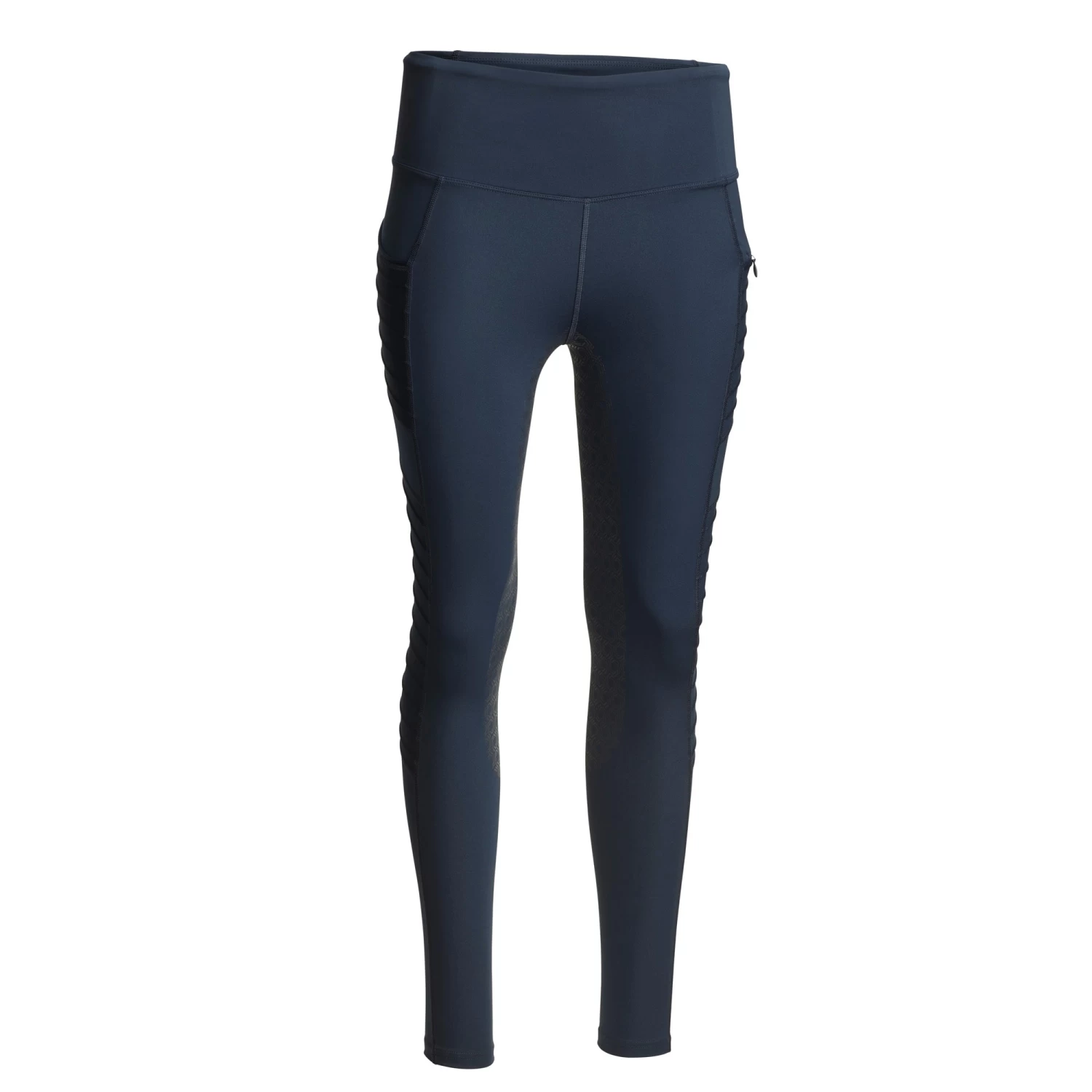 EOS Moto from Ariat are really comfortable and stretchy riding tights in a compression material. The riding tights have a wider waist, which provides nice support and high comfort. EOS Moto riding tights are full grip that are very stretchy with 3D panels on the outside of the legs. The riding tights from Ariat have a cell phone pocket on the outside of the thigh and a pocket at the back of the waist that you close with a zipper.
