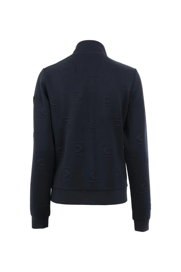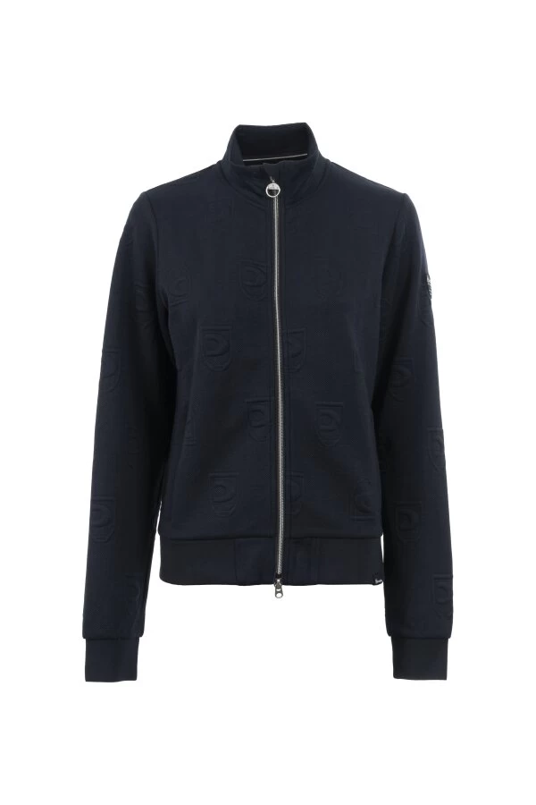 Esther is a nice and cool riding sweatshirt with a full two-way zipper. The riding sweatshirt has a stand-up collar and two practical front pockets with zippers. The Esther shirt is made in a waffle weave textured look with Cavallo logos all over the shirt. It also has knitted cuffs at the hem and sleeve ends.