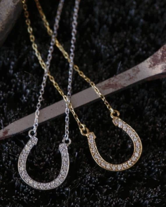 Horseshoe with brilliants attached to the chain. Feminine and elegant is the least you can say about this gold necklace. The necklace is available in white or red gold.