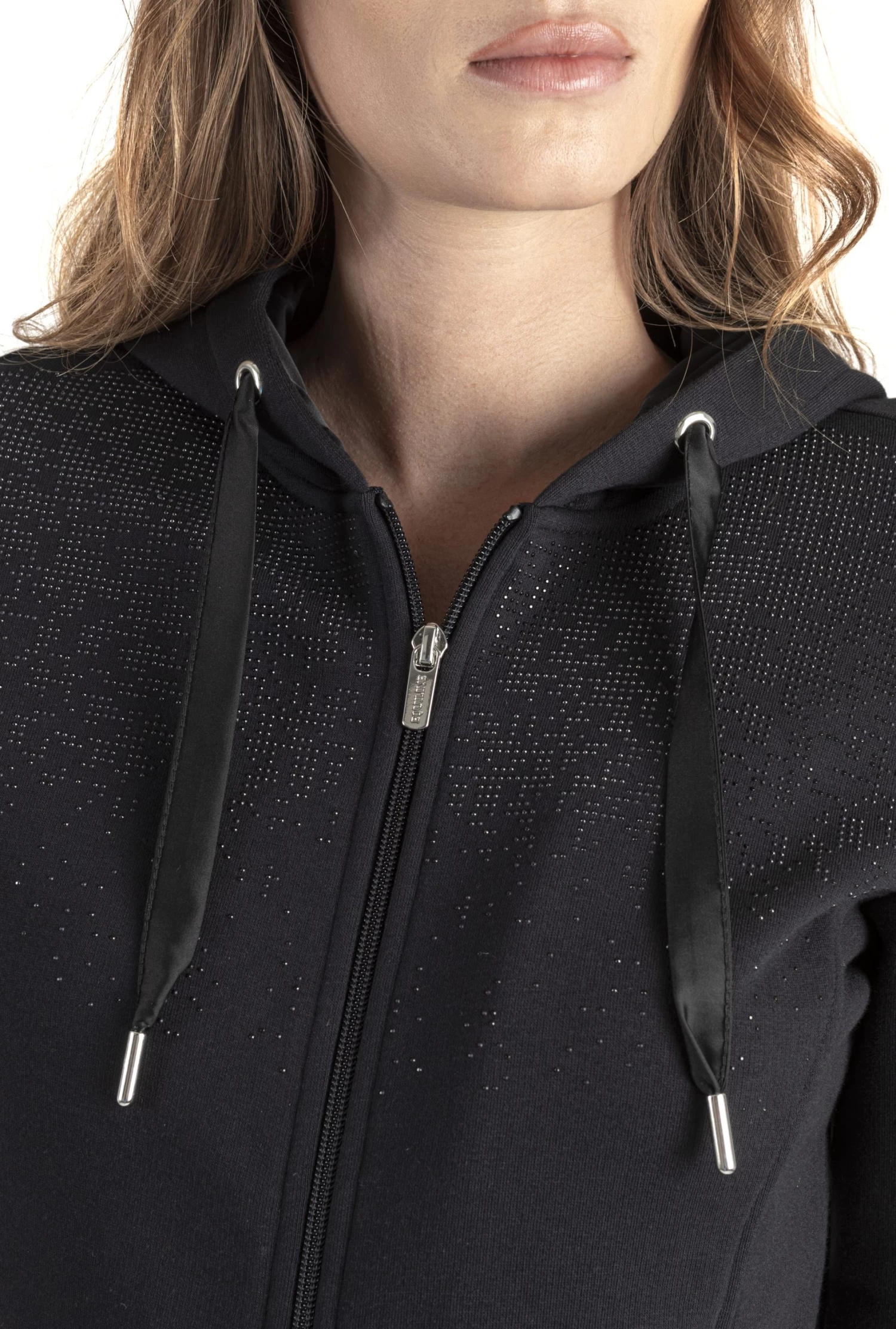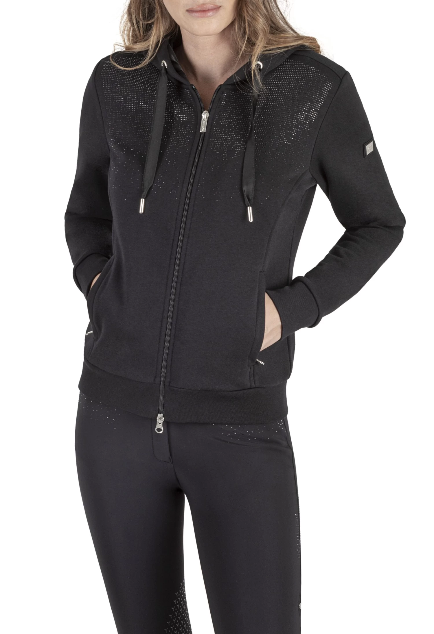 Grobyg Sweatshirt is a comfortable sweatshirt with a cozy and adjustable hood. This riding sweatshirt also has two pockets with zipper and soft cuffs. Grobyg Sweatshirt has super nice rhinestone details on the chest and a nice Equiline logo on the arm.