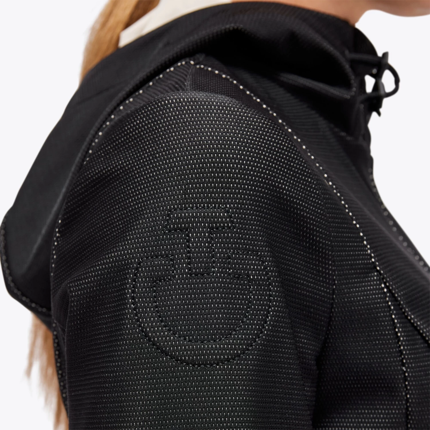 The riding jacket has a hood and full zipper that makes it both practical and comfortable. The jacket has great breathability which is perfect during training or stable work.