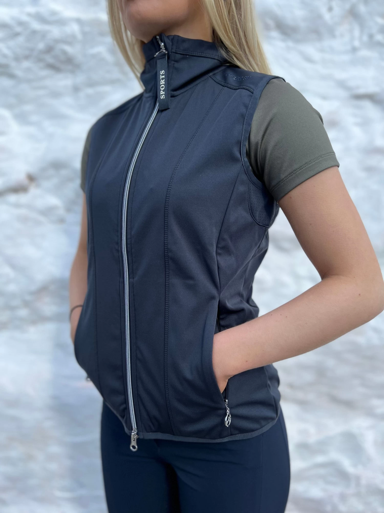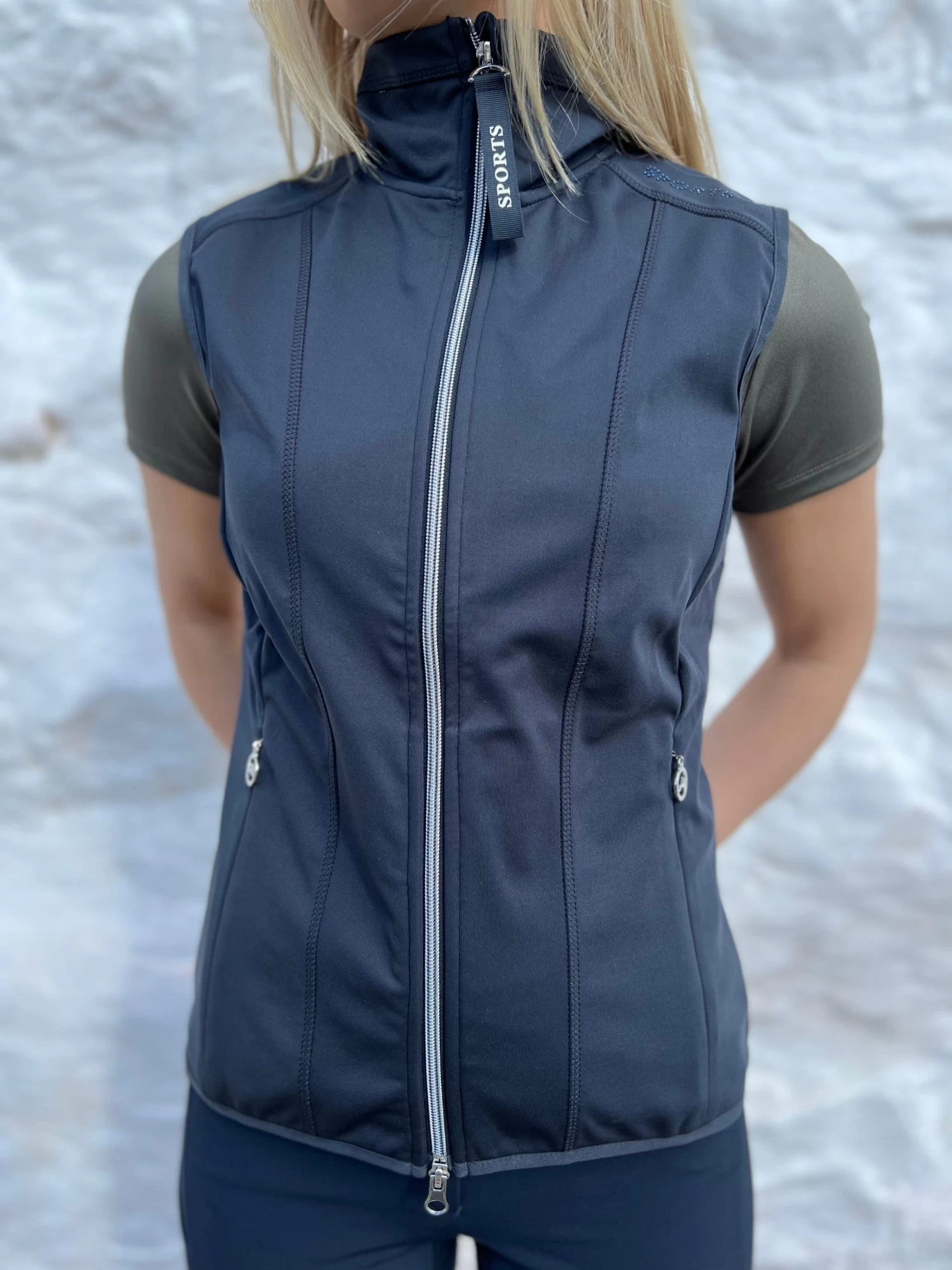 Hope Style is a thin riding vest with nice details. The riding vest has a two-way zipper, two front pockets and a high collar with a nice logotype in rhinestones on the back. Hope Style riding vest has a mesh panel in the back for extra ventilation.Â