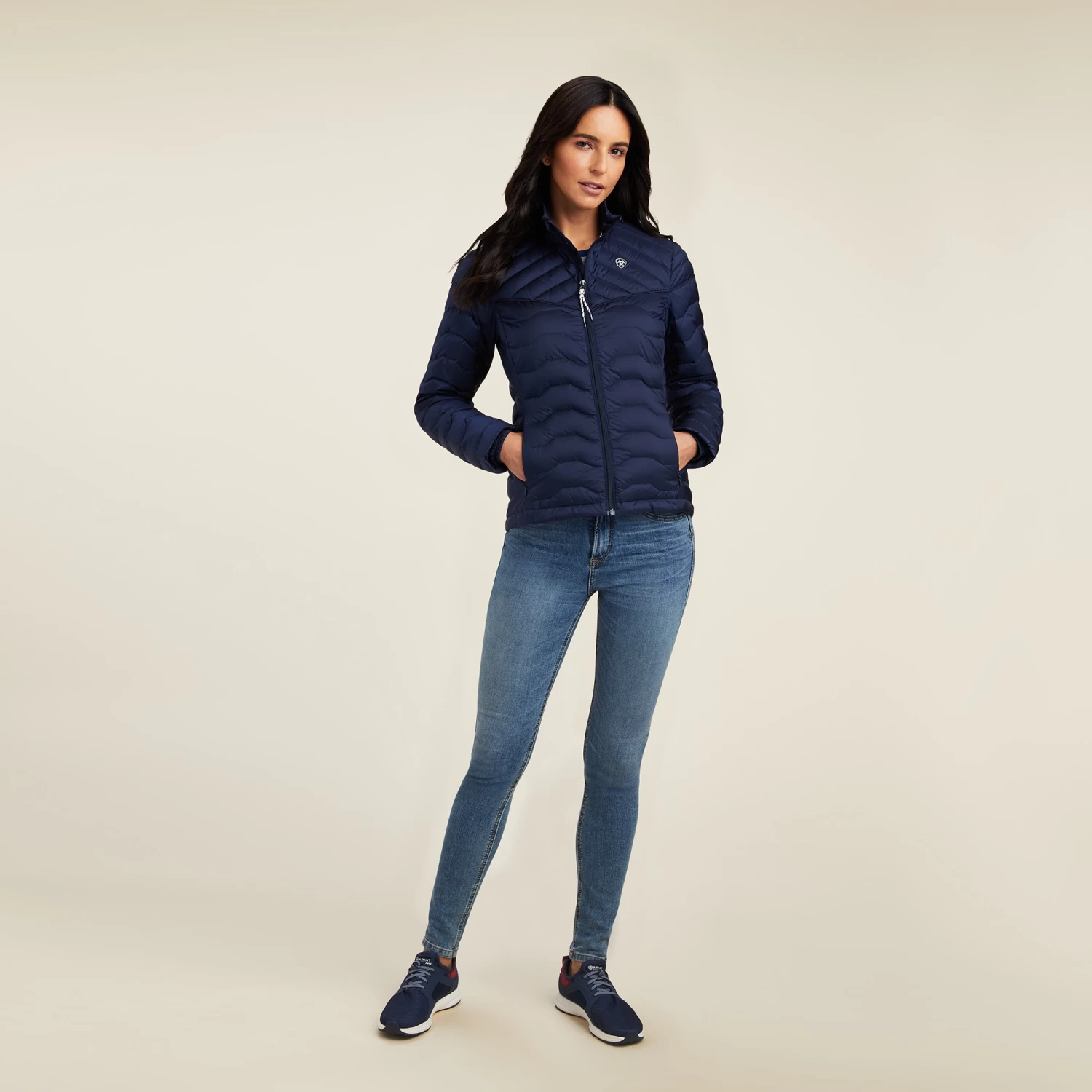 The varied angle quilting gives the jacket a flattering look, featured with zippered hand pockets.