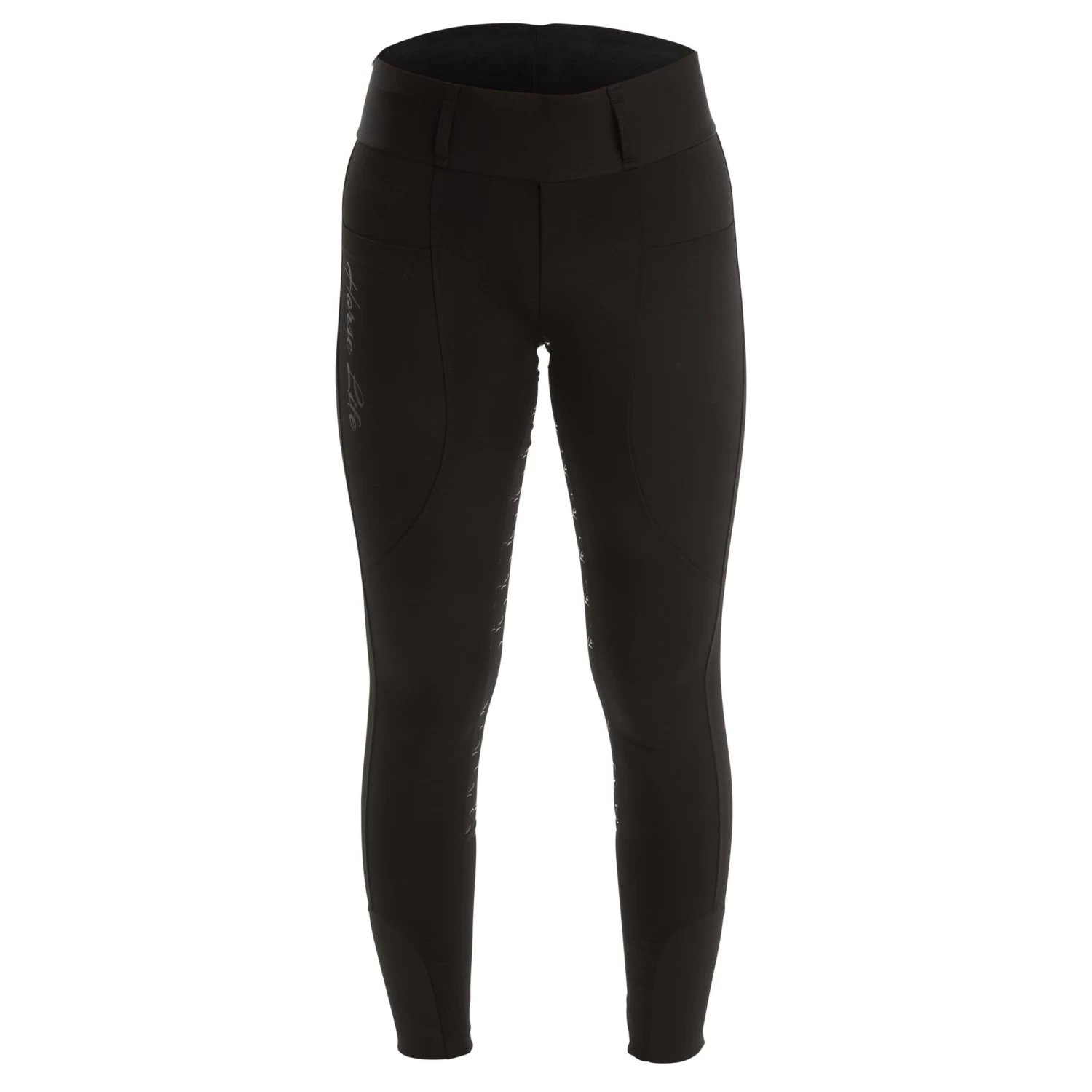 At the front there is a discreetly looking Horse Life logo on the right leg and two spacious pockets with silicone on the inside to prevent things from slipping out during the ride. At the back there are two decorative stylish pockets with a button. Elastic cuffs at the leg ends.