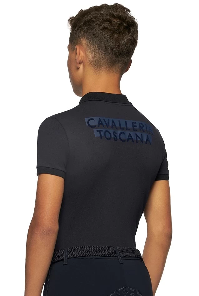 Junior Split Printed S/S Training Polo is a pique with short sleeve, it has CT logo on the chest and Cavalleria Toscana print on the back. This is the perfect riding polo for children, perfect for training during summer.