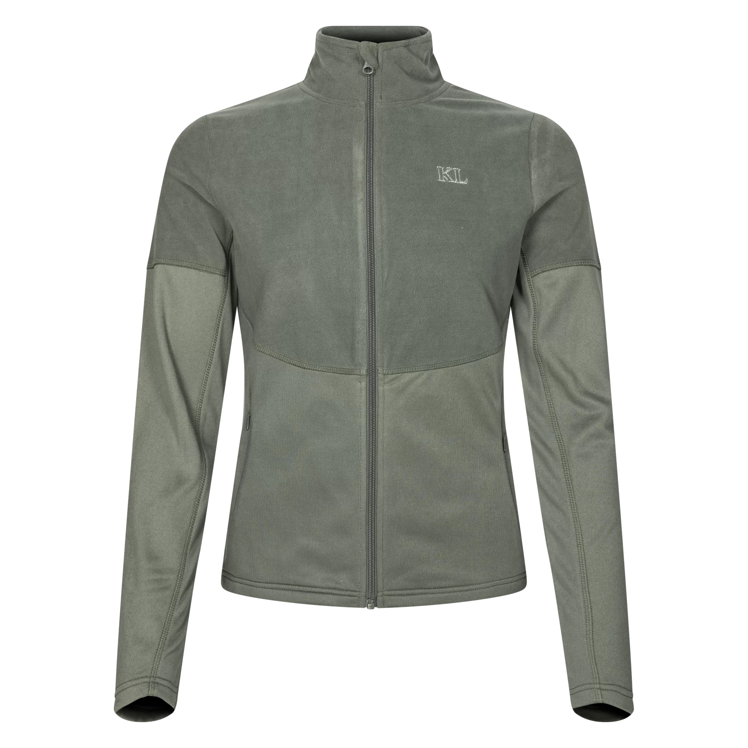 KLbirdie microfleece is a practical and comfortable sweater with a zipper and thin and comfortable fleece fabric with parts turned with the fleece either inside or out. The fleece has two front pockets with hidden zippers and a small, elegant Kingsland logo on the chest and a larger print on the top of the back.