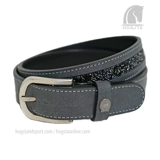 Well-made gray leather belt from Sattlerei Otto Schumacher decorated with Crystal Rock from Swarovski in matching colors.