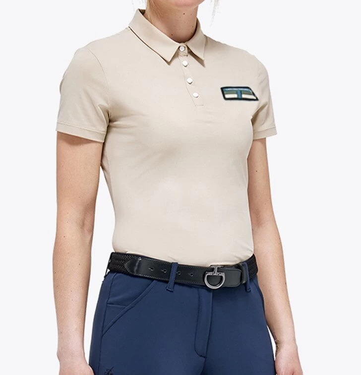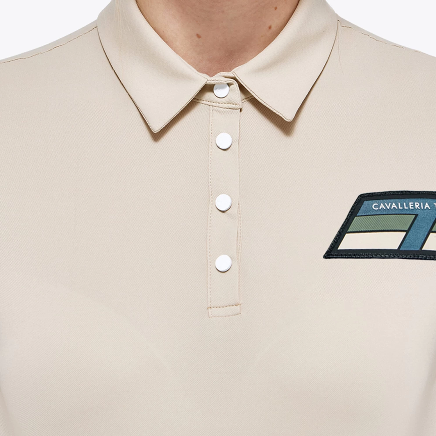 The polo shirt has a nice beige color and a multicolor logo on the chest. The shirt has a super soft, lightweight and stretchy material which makes it to the perfect training shirt for spring and summer!Â
