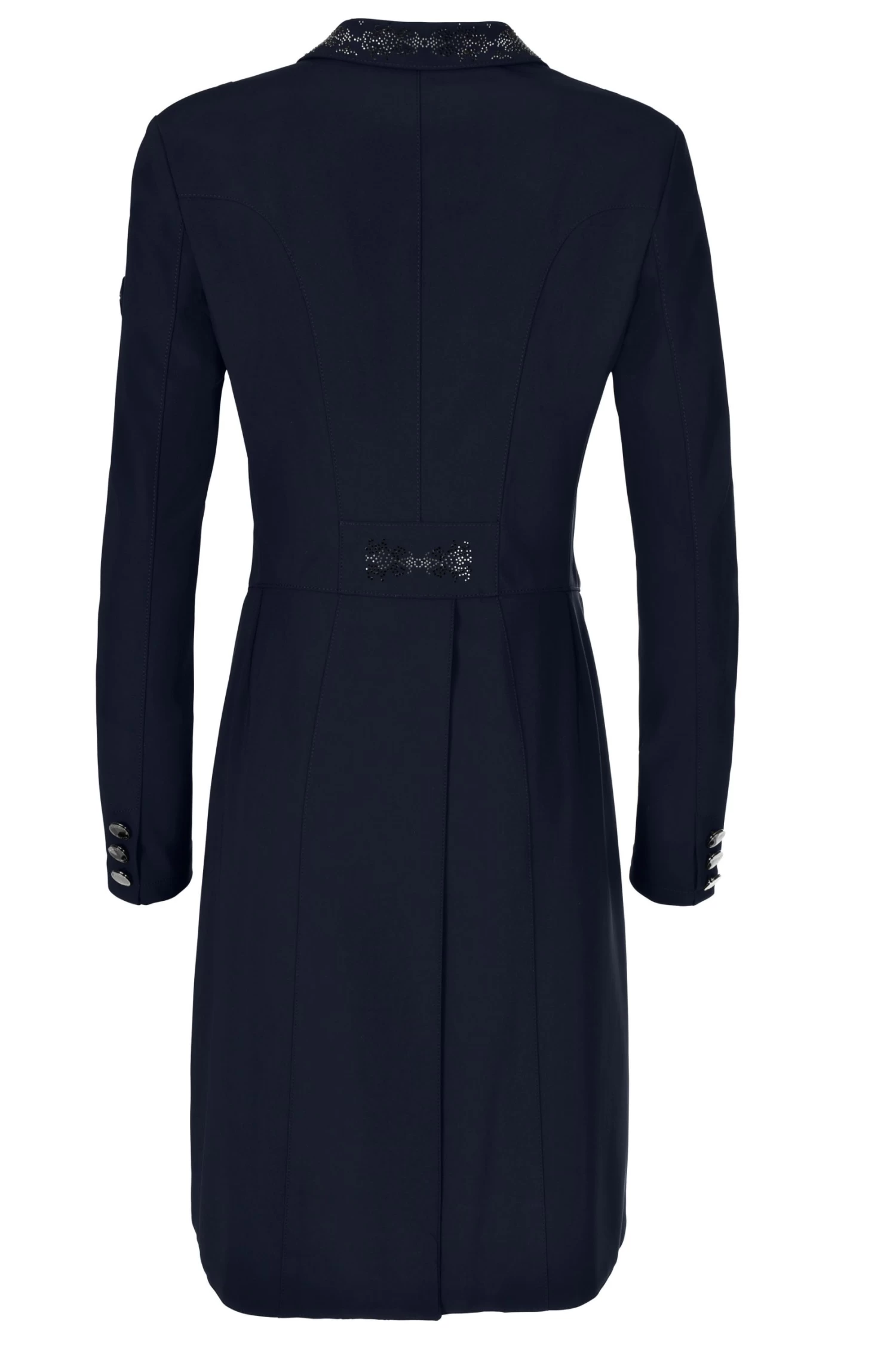 The dressage tail coat is incredibly soft and breathes well, which makes Pikeur’s dressage tail coat extra comfortable to wear. The model is a typical tail coat, this one has rhinestones on the collar, the handkerchief and in the lower back.