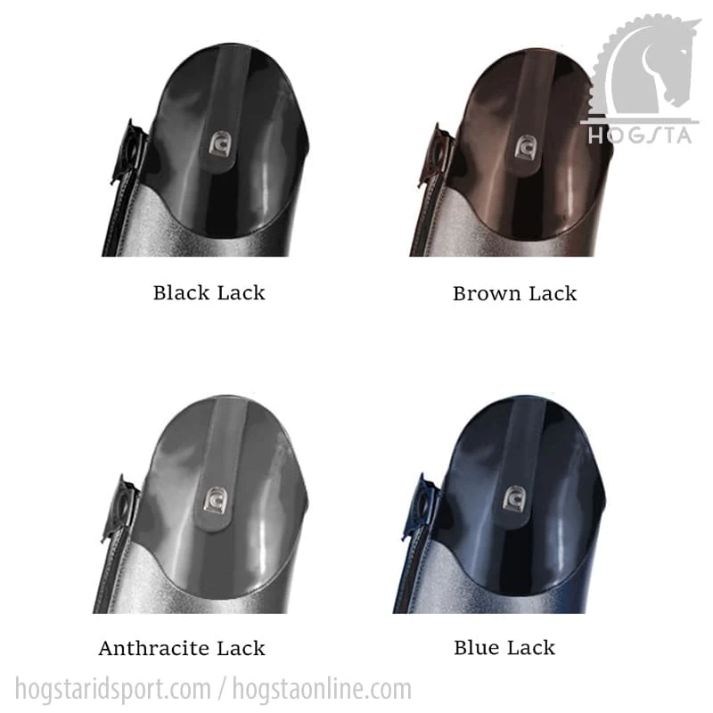 Linus Dressage Lack is available in four different colors and has a lacquered top. The top is tone in tone with the boot, ie. for a black boot it is a black lack top.
