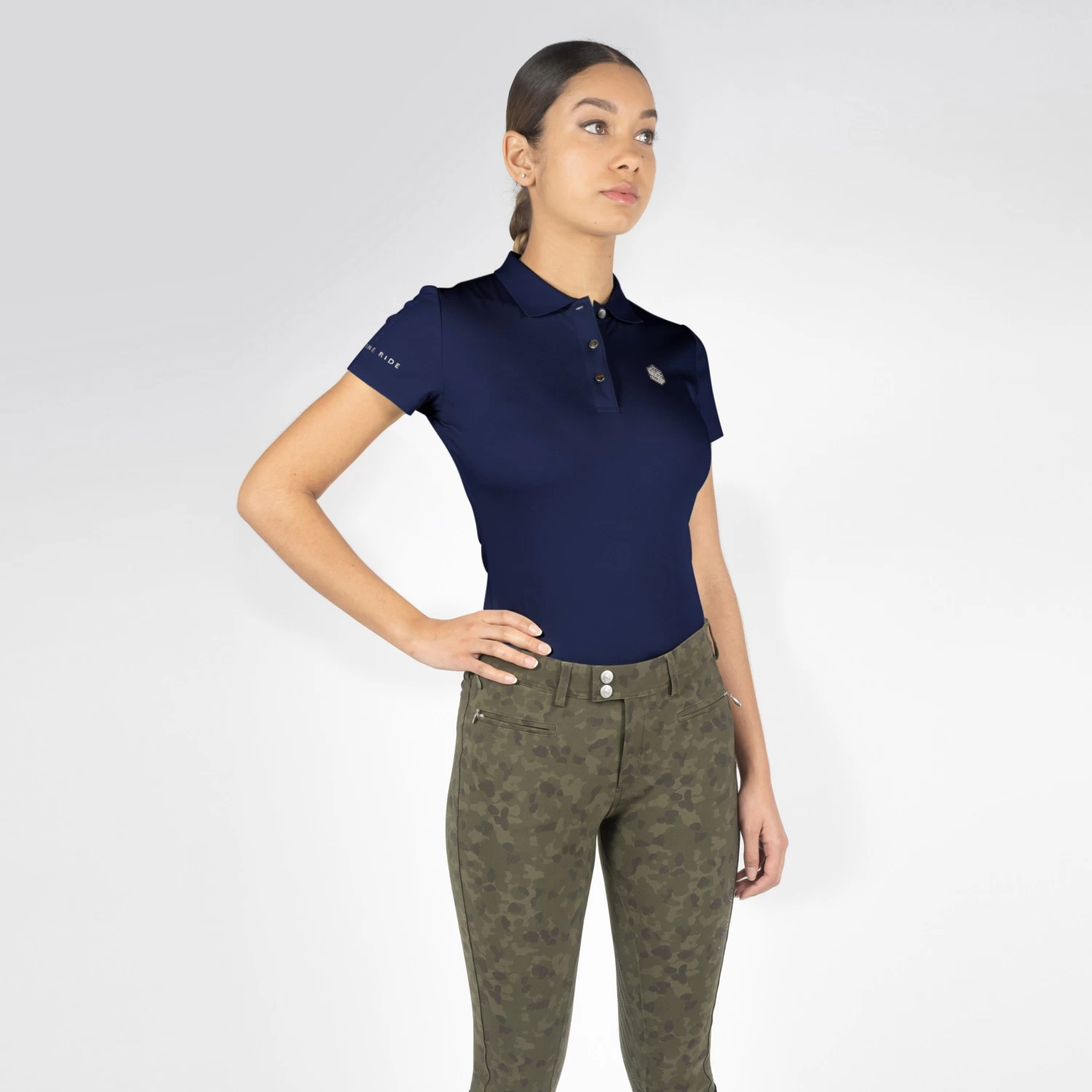 Margot Polo from Samshield is a very comfortable riding shirt with short sleeves and made in a light material. A stylish Logo from Samshield in rhinestones adorn this short-sleeved riding pique.
