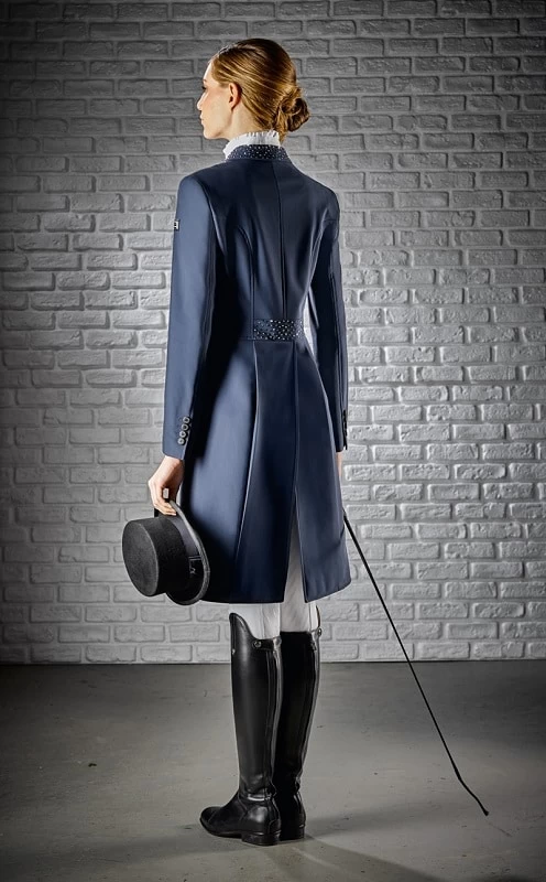 Marilyn dressage tail coat has a beautiful design with a very neat shape for the highest elegance and comfort during the competition. Collar with strass element ton in tone further enhances the elegance.