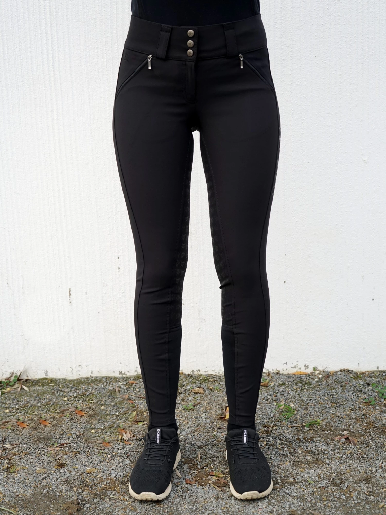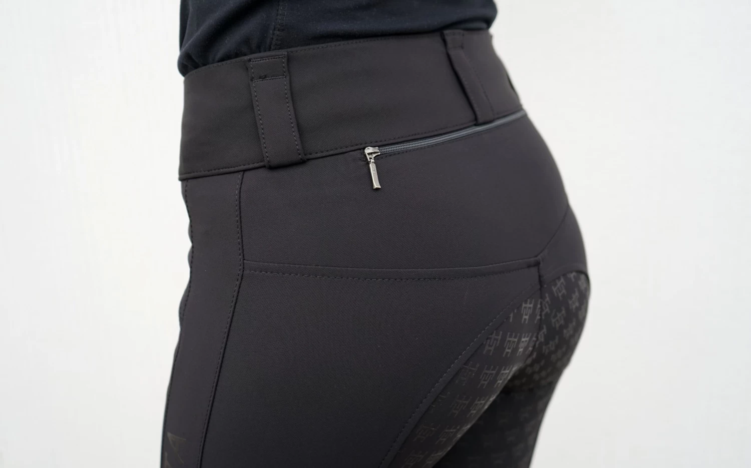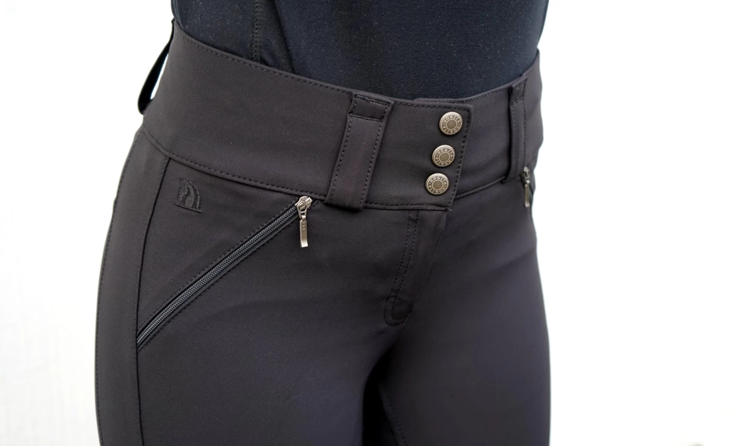 The riding breeches has two slant pockets with YKK zippers at the front and a mobile pocket with zipper closure at the back, this way you can easy bring your phone on the ride. The material at the leg end is softer and more elastic for optimal comfort. Along with the left leg HOGSTA is printed tone in tone which is a very neat detail.Â