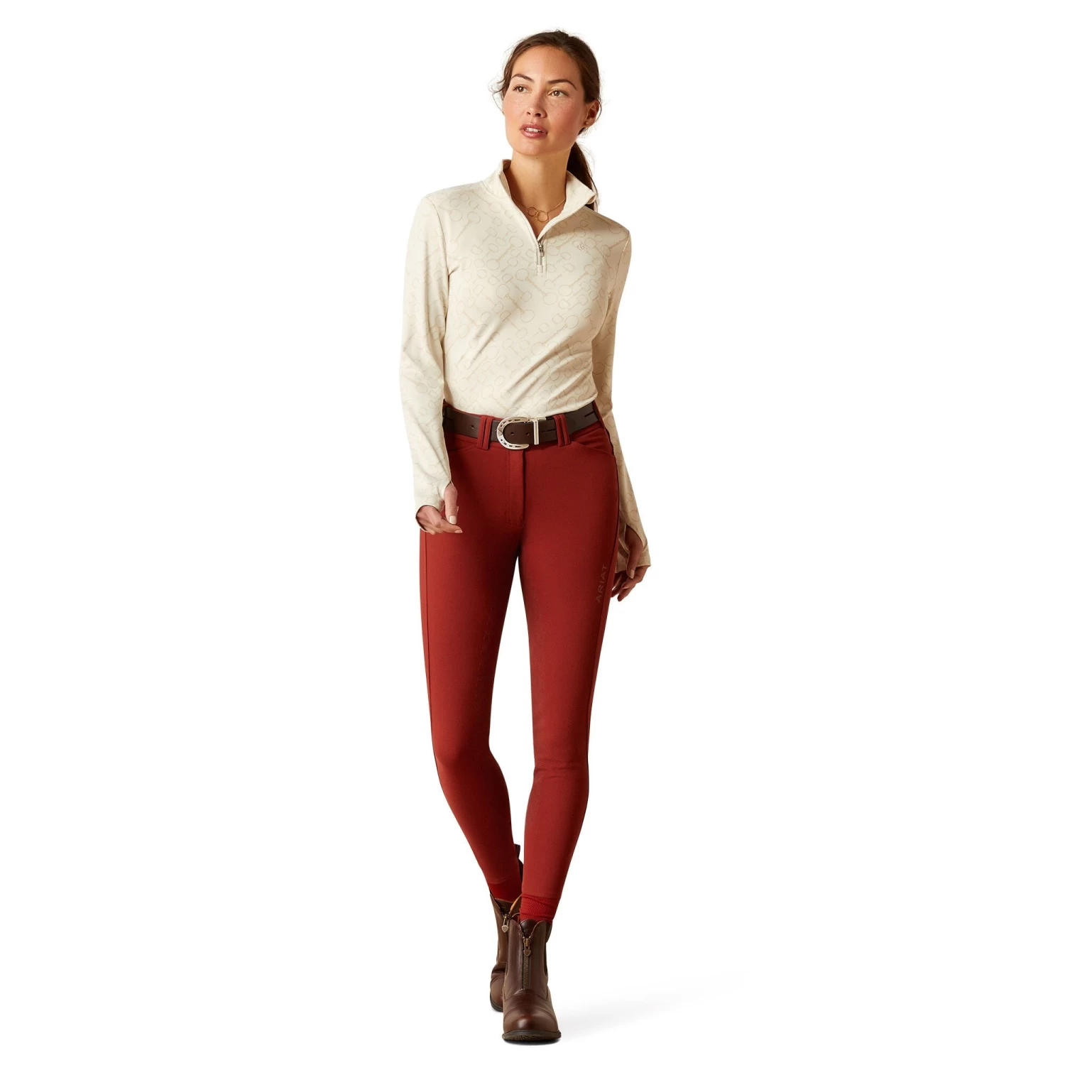 Prophecy is a stretchy and good looking riding shirt in a functional material from Ariat. This riding shirt has a nice sand beige colour with patterns of bits which makes this shirt unique. Prophecy functional shirt has 1/4 zipper on the front with a high collar. The Ariat-logo is labeled on the chest in matching silver with the zip.