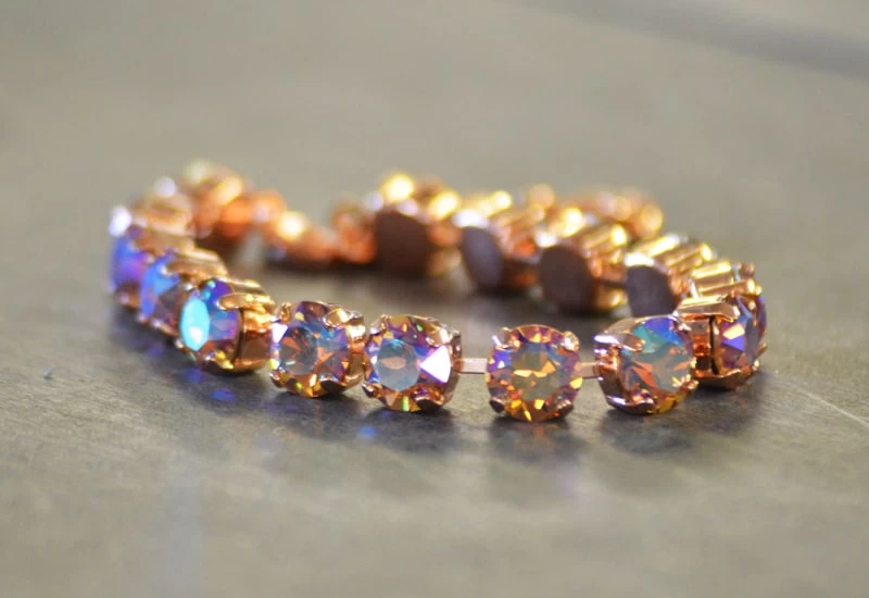 On this bracelet are 8mm large XL stones. The stones on the bracelet from Otto Schumacher are set in Rose Gold settings, which together with the swarovski crystals gives an incredibly mild and exclusive look.