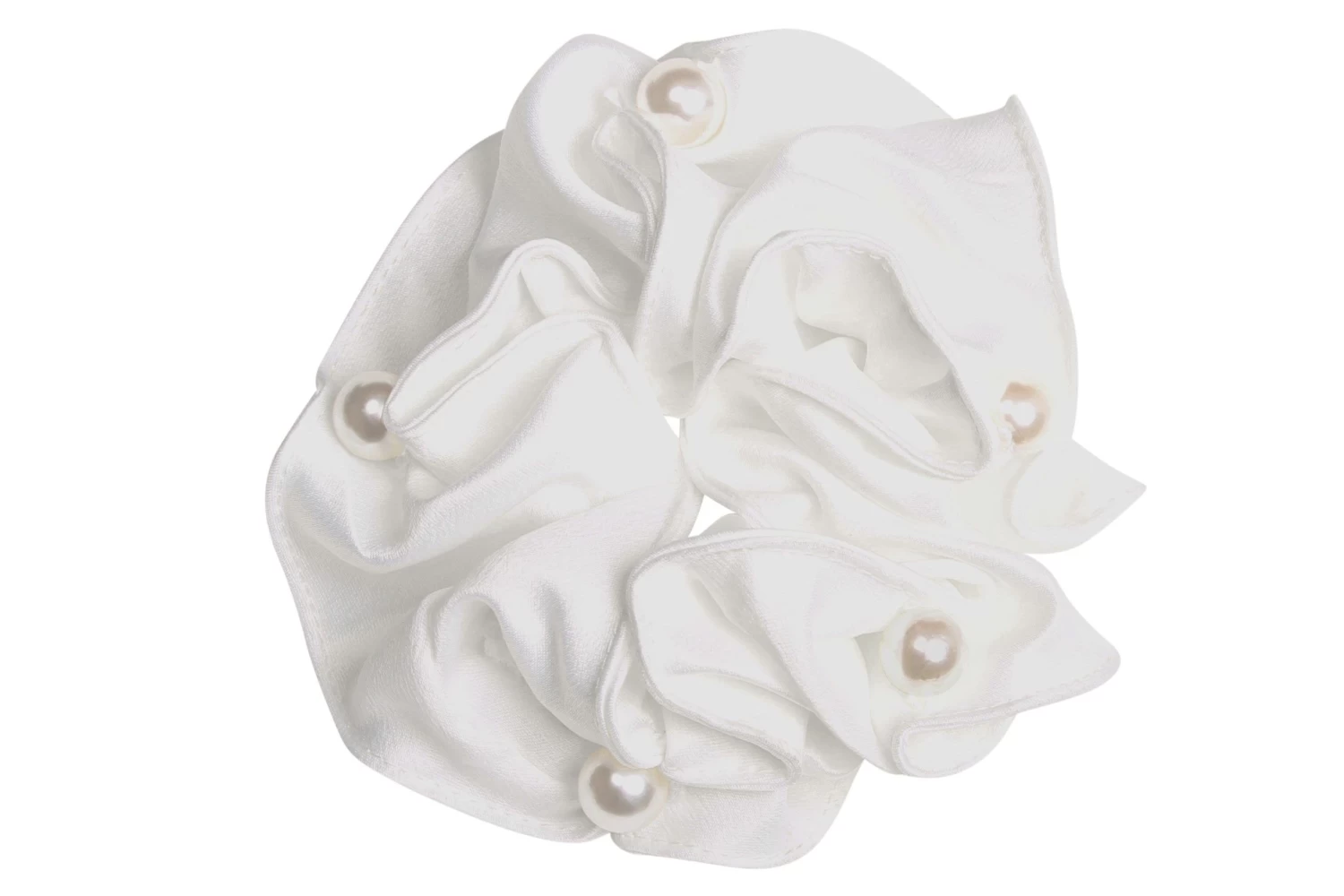 This is an elastic scrunchie with pearls on satin from SD Design.