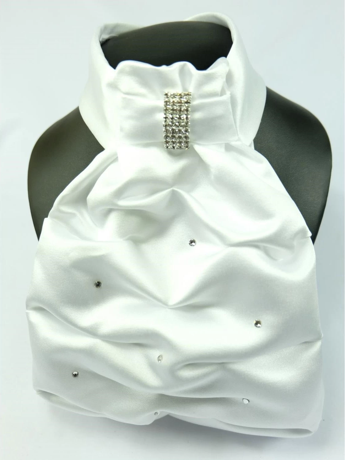 Contessa Grace is made of white satin and decorated with rhinestones in the neck.