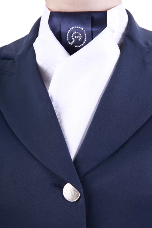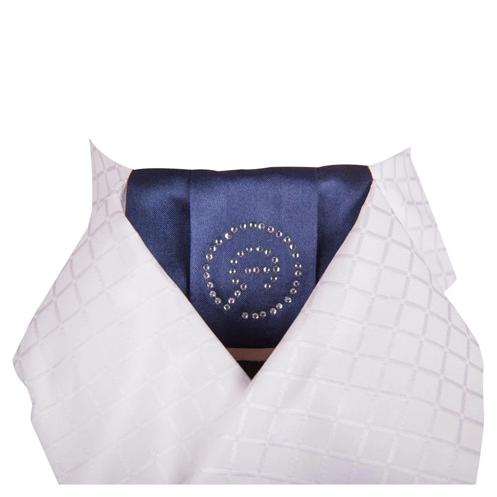 Beautiful stock tie in white with a blue center and shiny rhinestones.