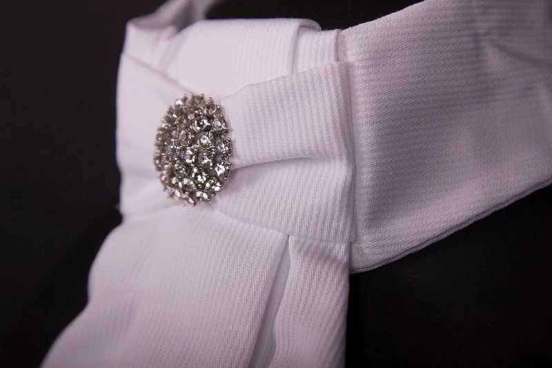 Here in the form of the stock tie Esteem – ready-knit stock tie with beautiful and decorative details. Round rhinestone detail in silver at the neck.