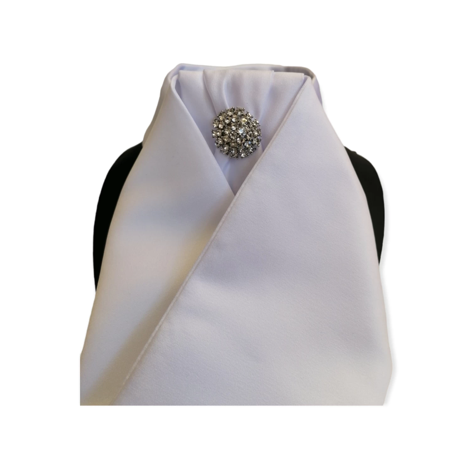 This stock tie is perfect for any competition day you want to look amazing. The stock tie from ShowQuest is white with a 3 row silver circle.