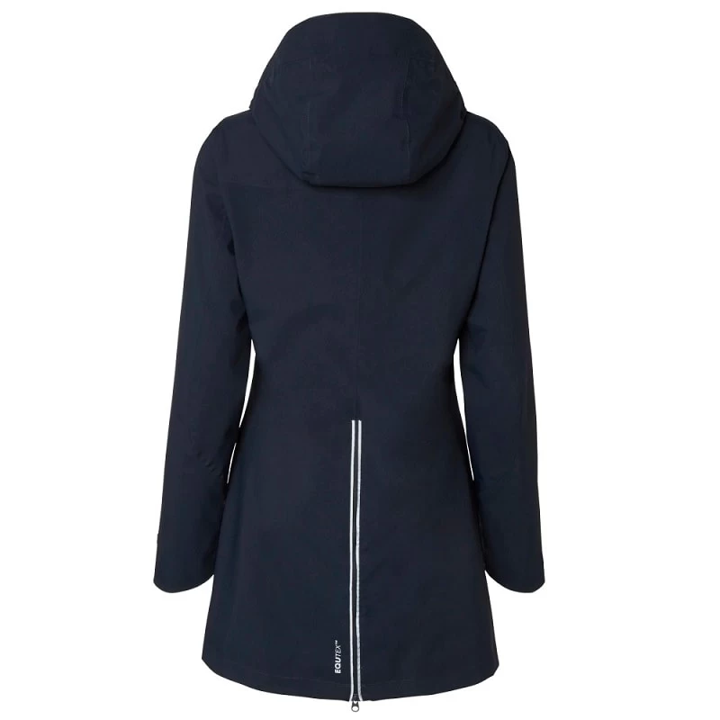 The raincoat is waterproof with breathable function and taped zippers.