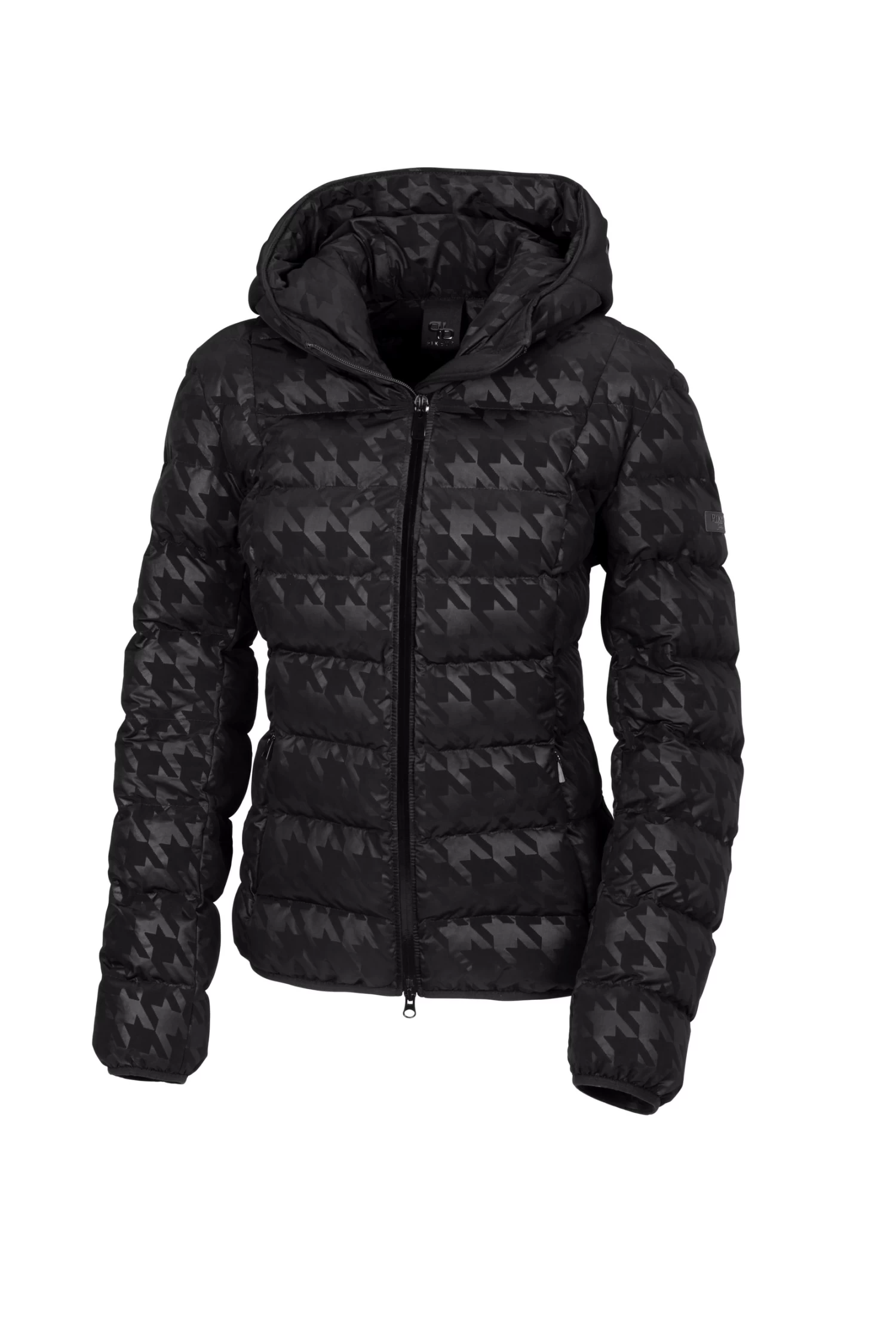 Suri is made of a high-quality nylon fabric. This jacket is very stylish and incredibly comfortable to wear as it is extremely light but at the same time has a high warmth function. The hood of the jacket is removable and has a Pikeur text in lacquer print on it. The hood can be fastened with a button on the back so that you can ride without it hitting and disturbing.