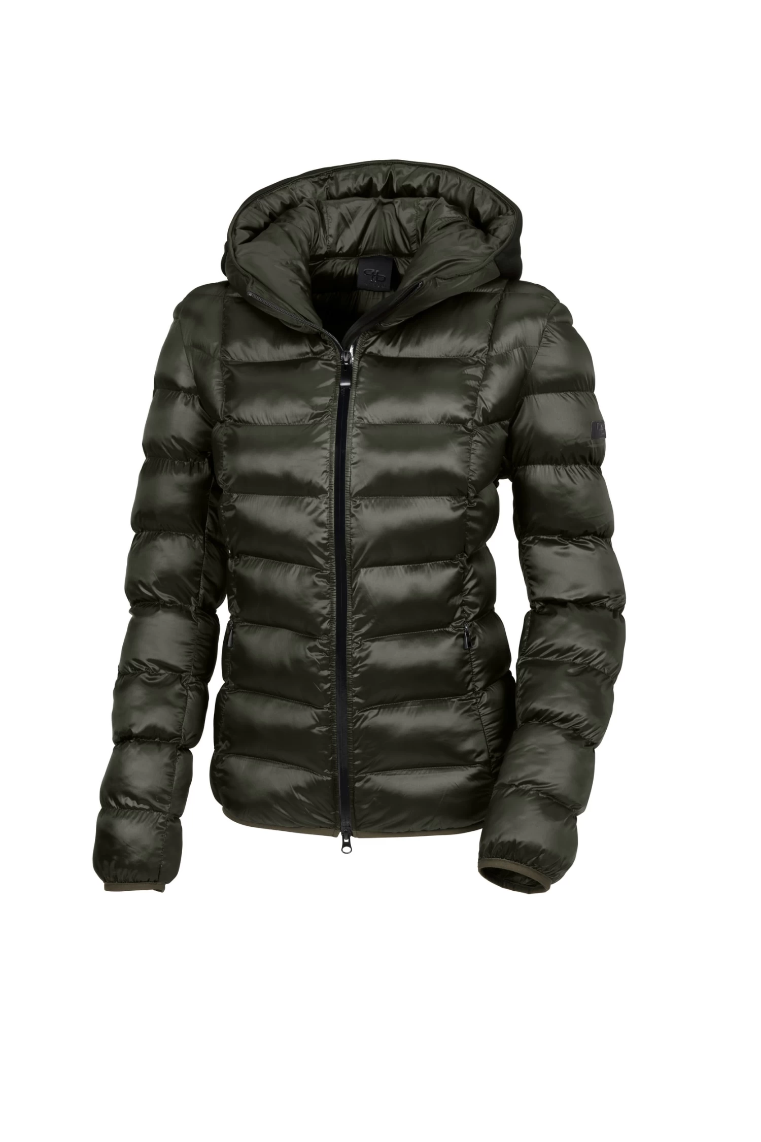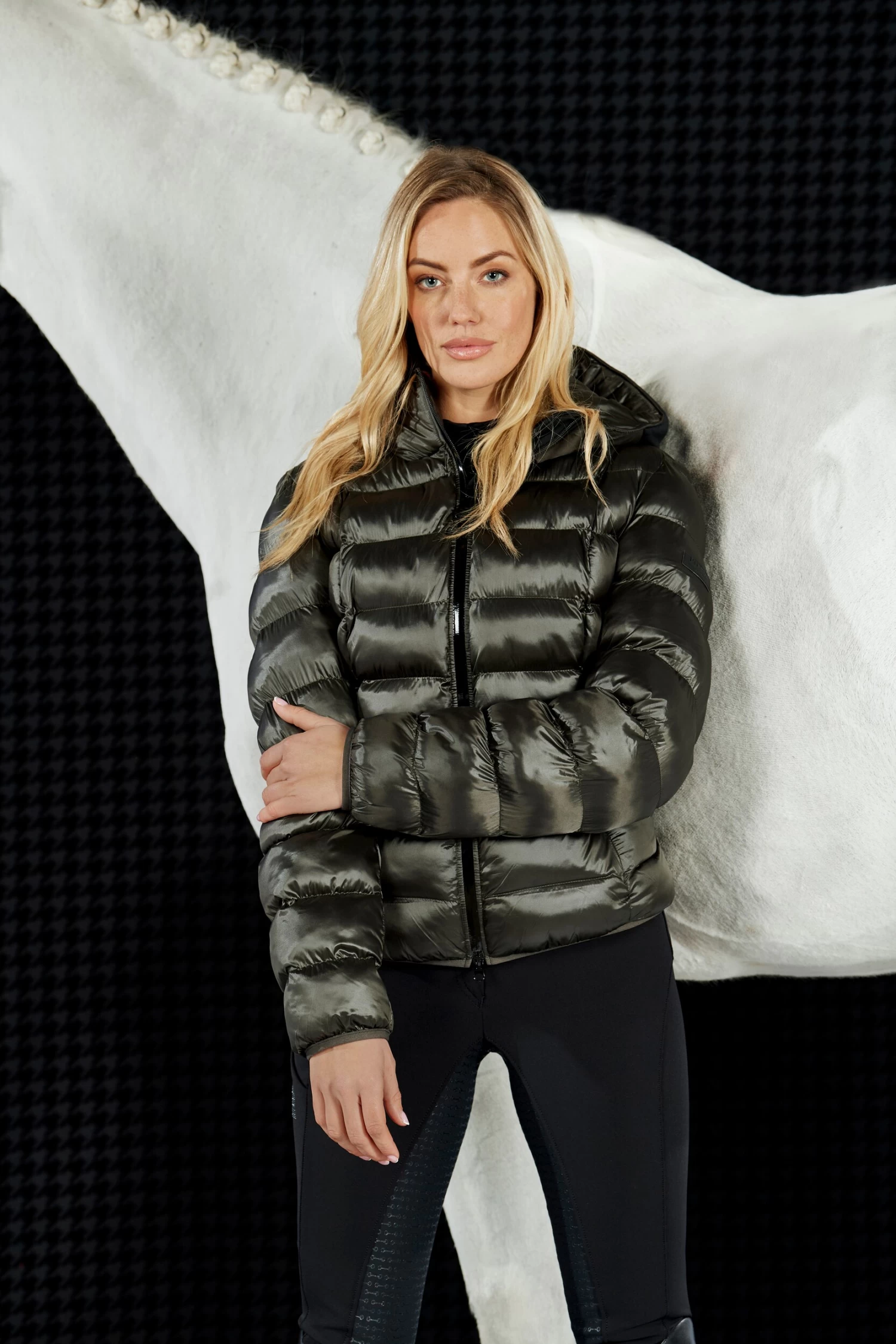 Suri jacket is made of high-quality, shimmering nylon fabric. It is a jacket that is very stylish and at the same time incredibly comfortable to wear. The jacket has a high warmth function while at the same time being extremely light and flexible to wear. The hood of the jacket is removable and has a Pikeur print in laqcuer on it, and it can be fastened with a button in the back so that you can ride without the hood hitting and disturbing your back.
