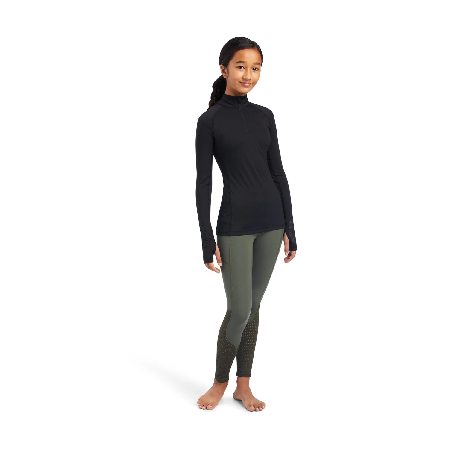 Sweater Lowell from Ariat. With a material mix in which a perforated thinner fabric is located under the sleeves and underneath the sleeves and a slightly more dense material with full breathability for the best comfort during exercise. The Ariat’s Moisture Movement Technology material draws moisture away from the skin to keep you dry and comfortable.