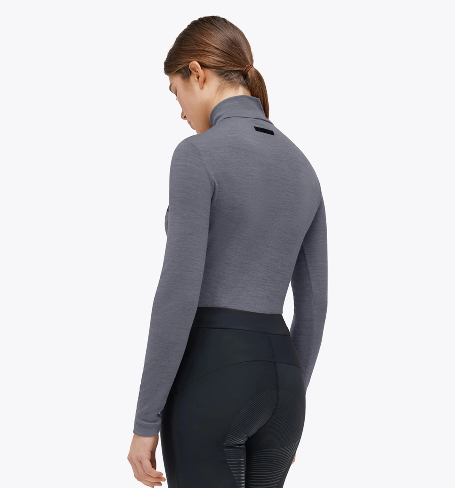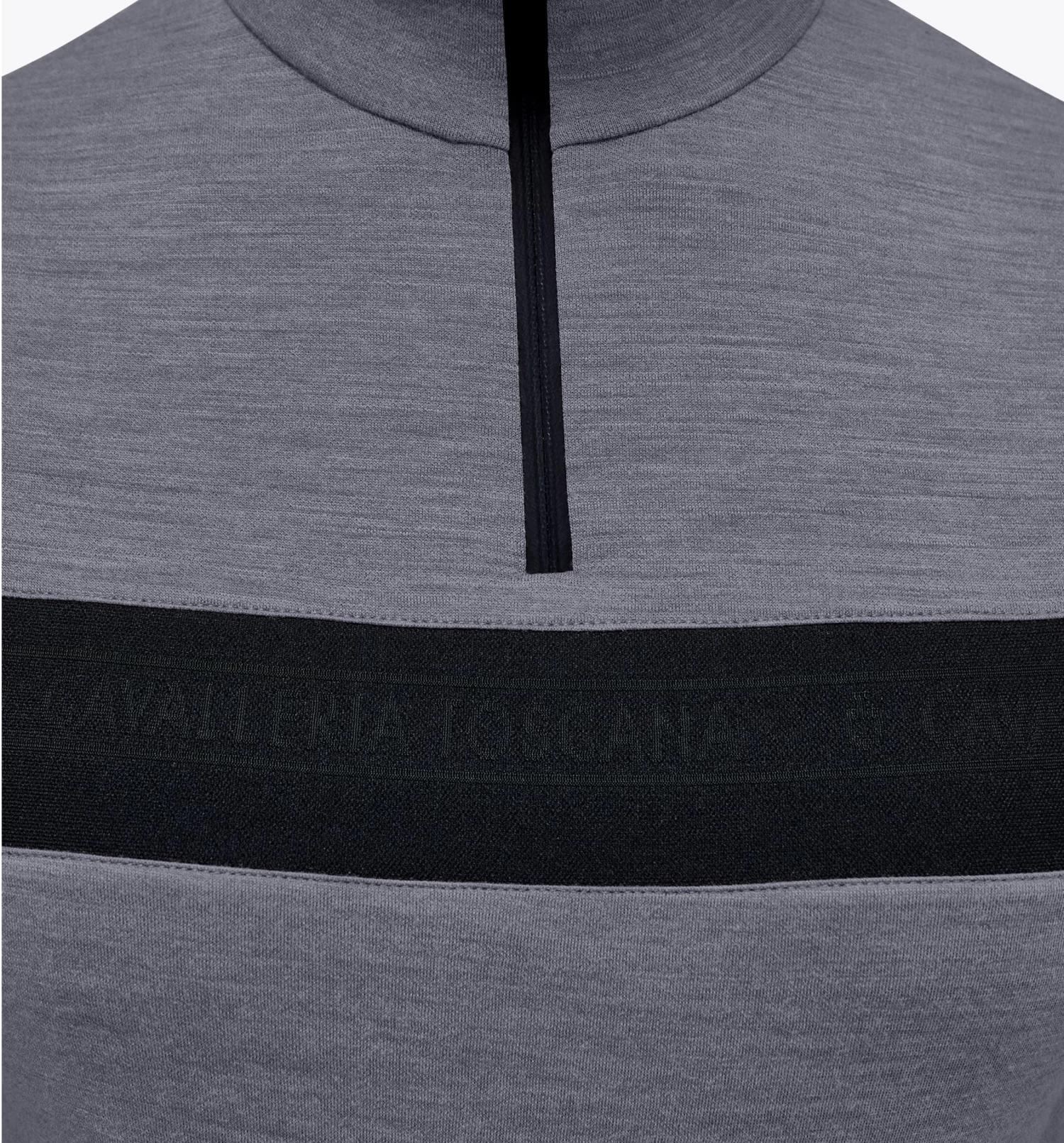 Tech wool training polo from Cavalleria Toscana has 1/4 zip with a collar. This riding shirt is in a super lovely grey color with black details and is really comfortable to wear. Tech Wool training polo has nice details, across the chest is a black band with Cavalleria Toscana written. The Tech Wool training polo shirt also has a 1/4 zip at the front and a small band at the back of the neck with the CT logo.